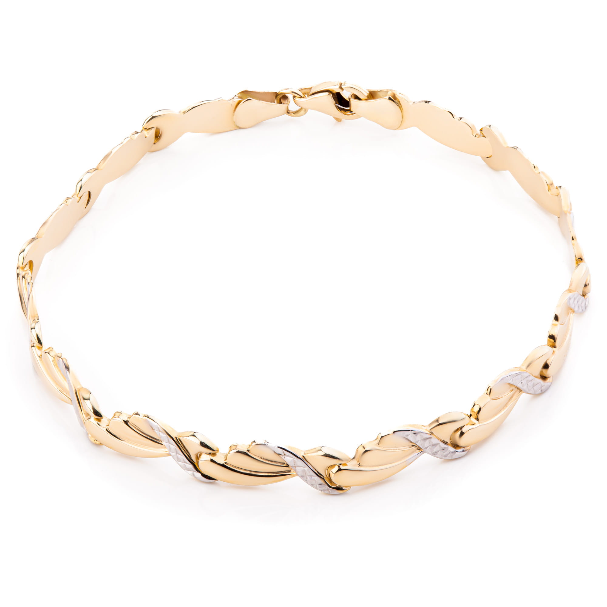 Bransoletka żółtego złota 585 (14K) z elementami z diamentowanego białego złota