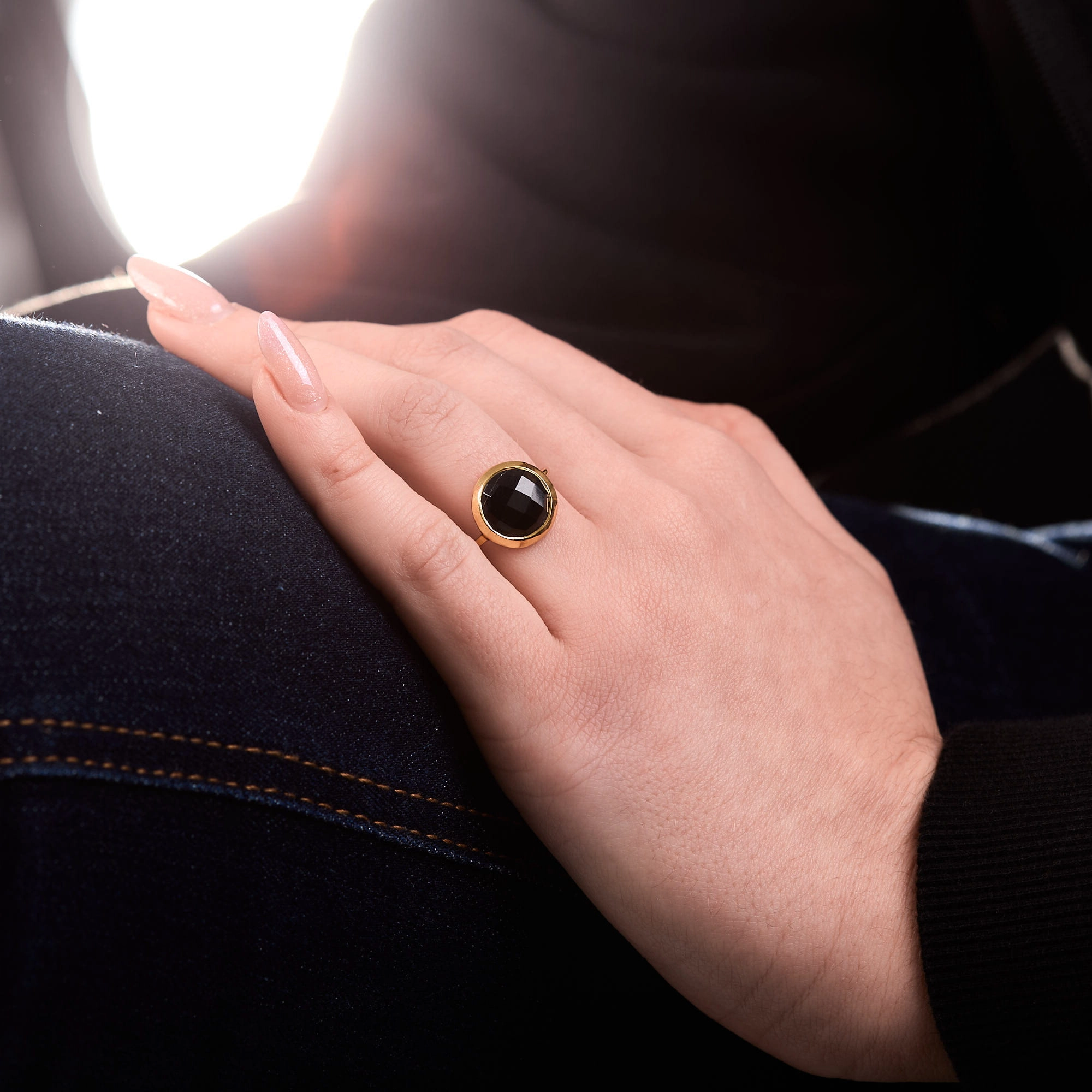DUŻY CZARNY PIERŚCIONEK ZŁOTY DAMSKI ROZMIAR 10 CYRKONIA POZŁACANE SREBRO