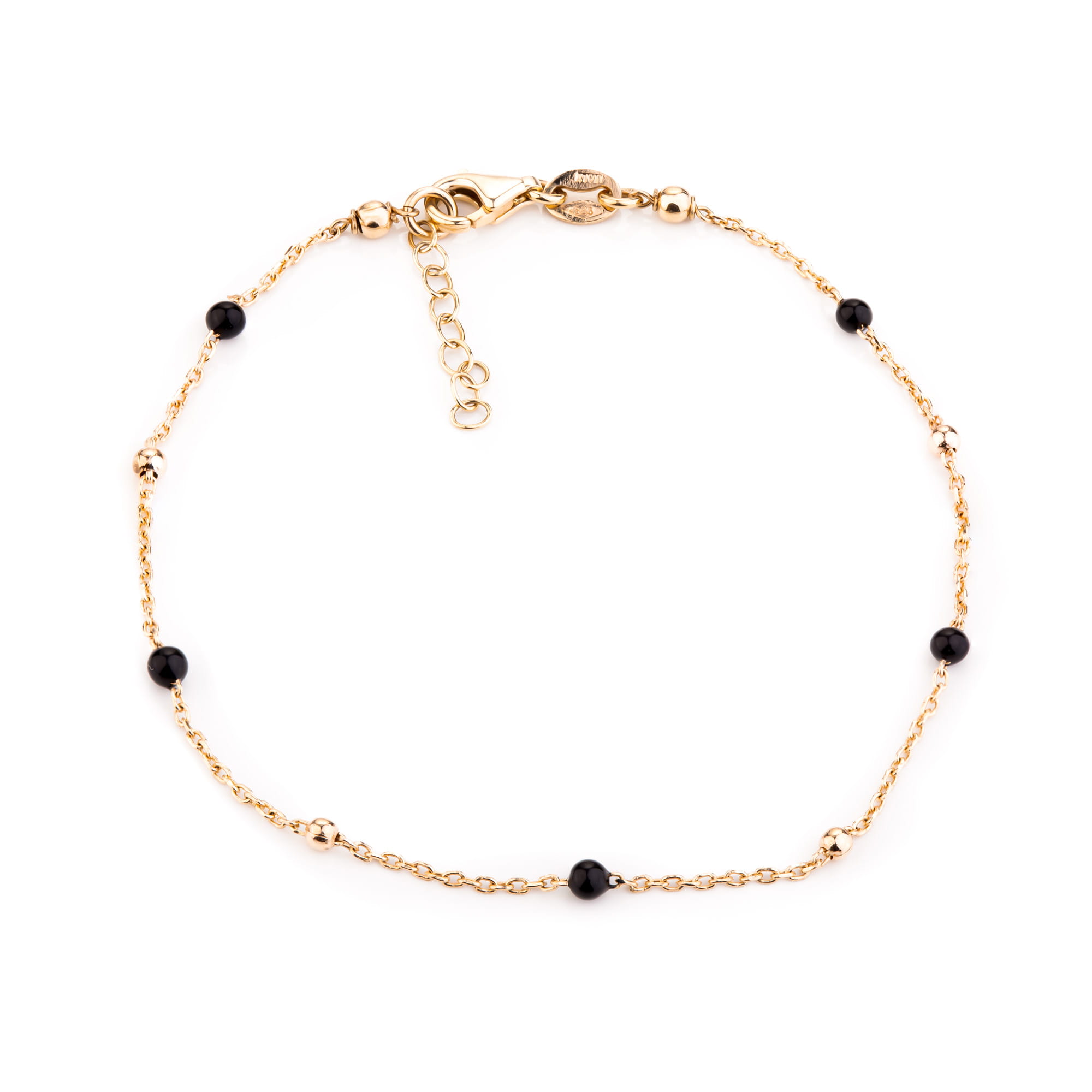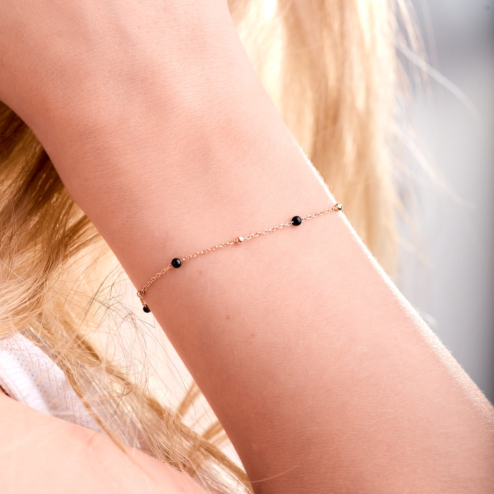 Delikatna złota bransoletka złoto 585 14K z czarnymi i złotymi kuleczkami
