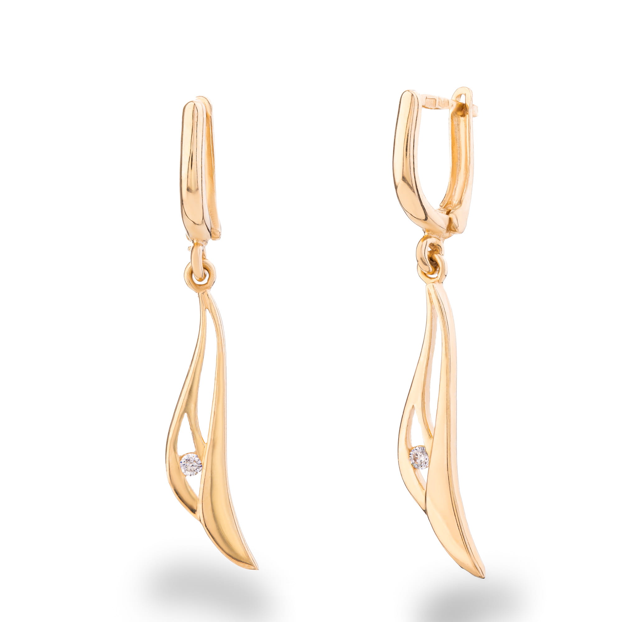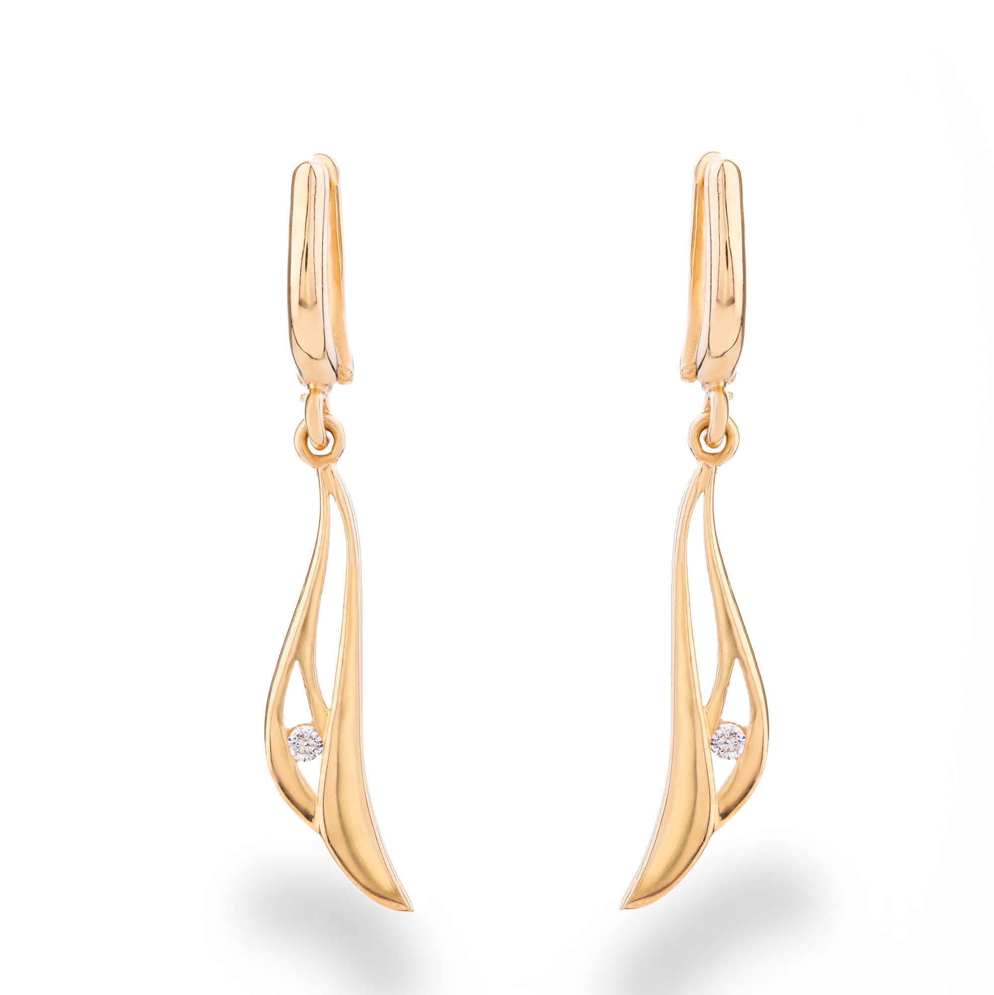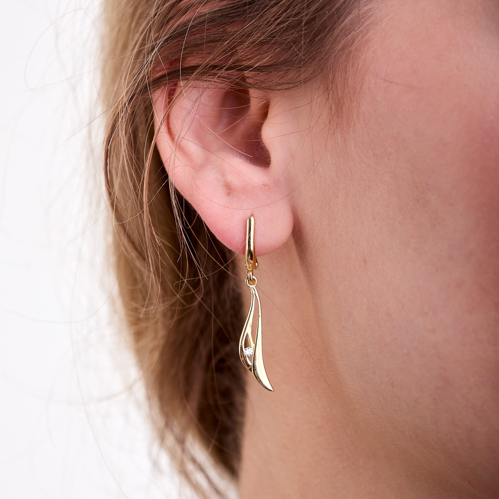 Delikatne złote kolczyki p.585 z cyrkonią, wiszące (14K)