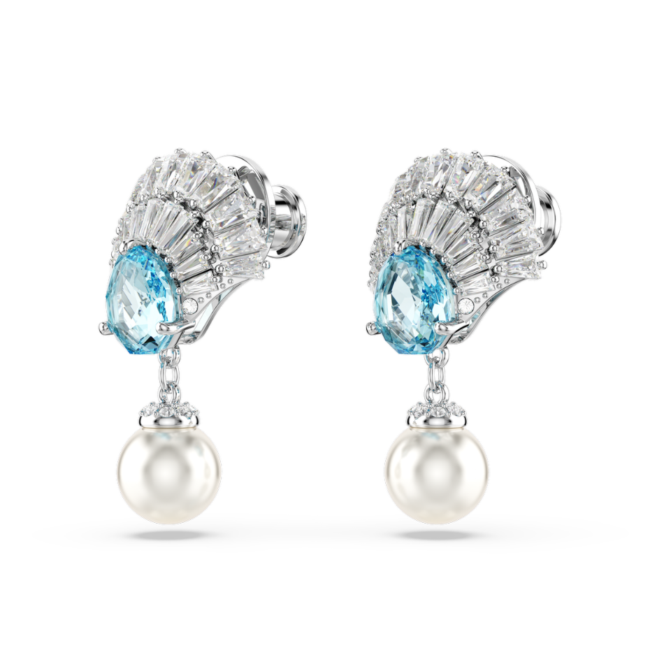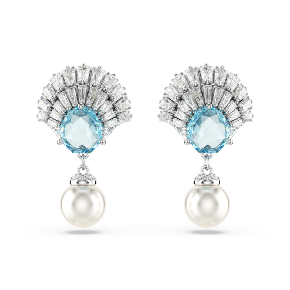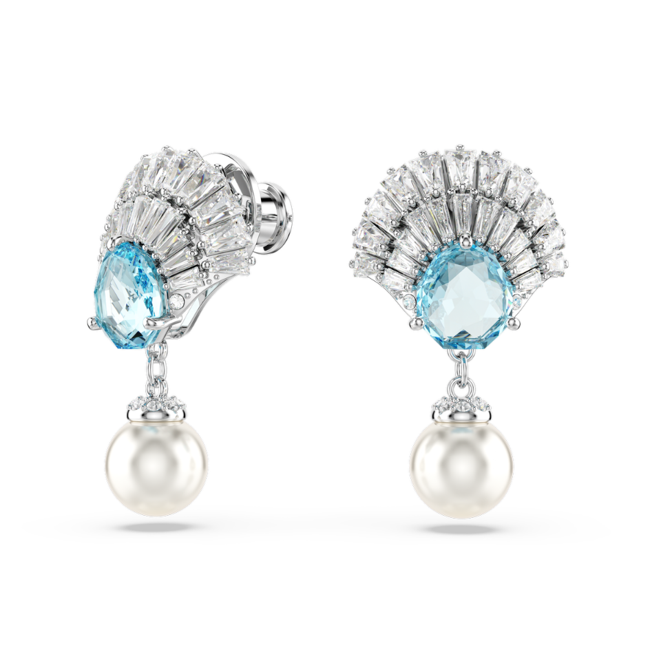 Długie kolczyki Idyllia SWAROVSKI | Kryształowa Perła, Muszla, Niebieskie