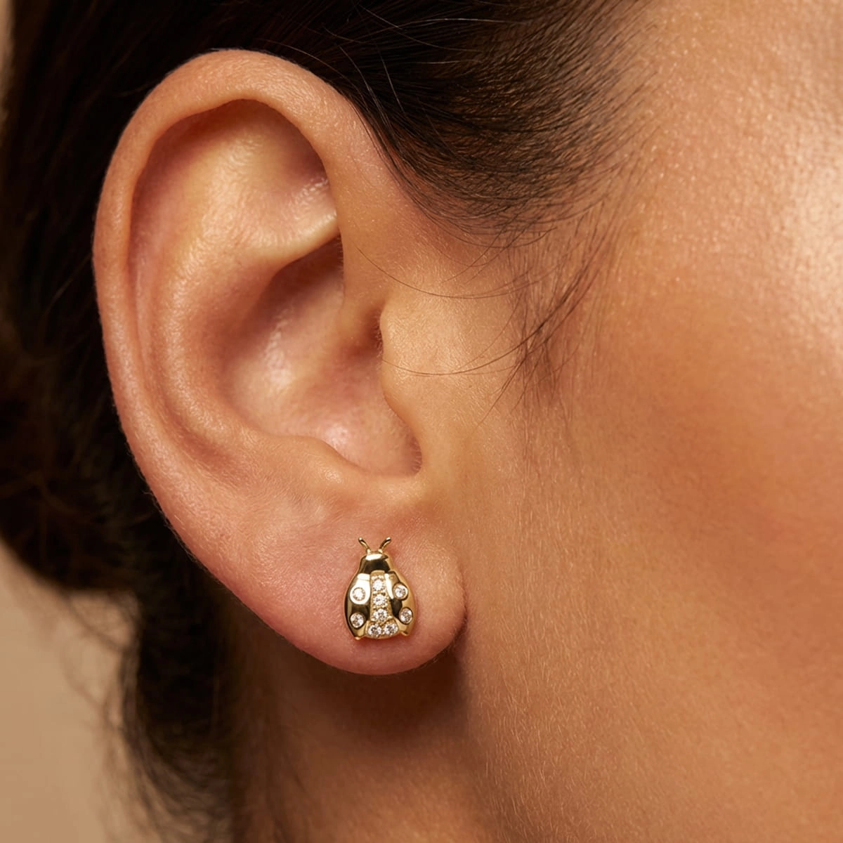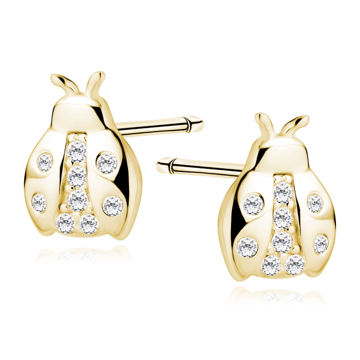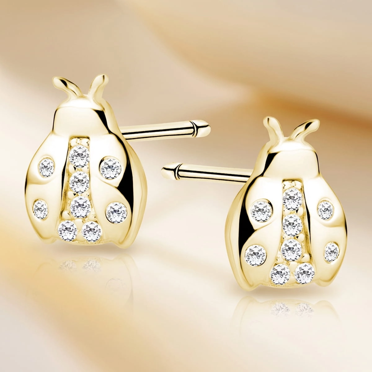 Dziecięce Srebrne Kolczyki BIEDRONKI - Srebro 925, Pozłacane, z Cyrkoniami