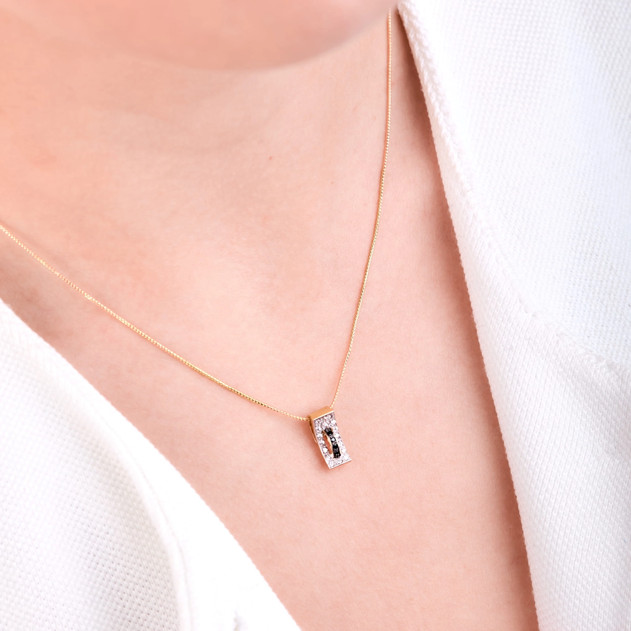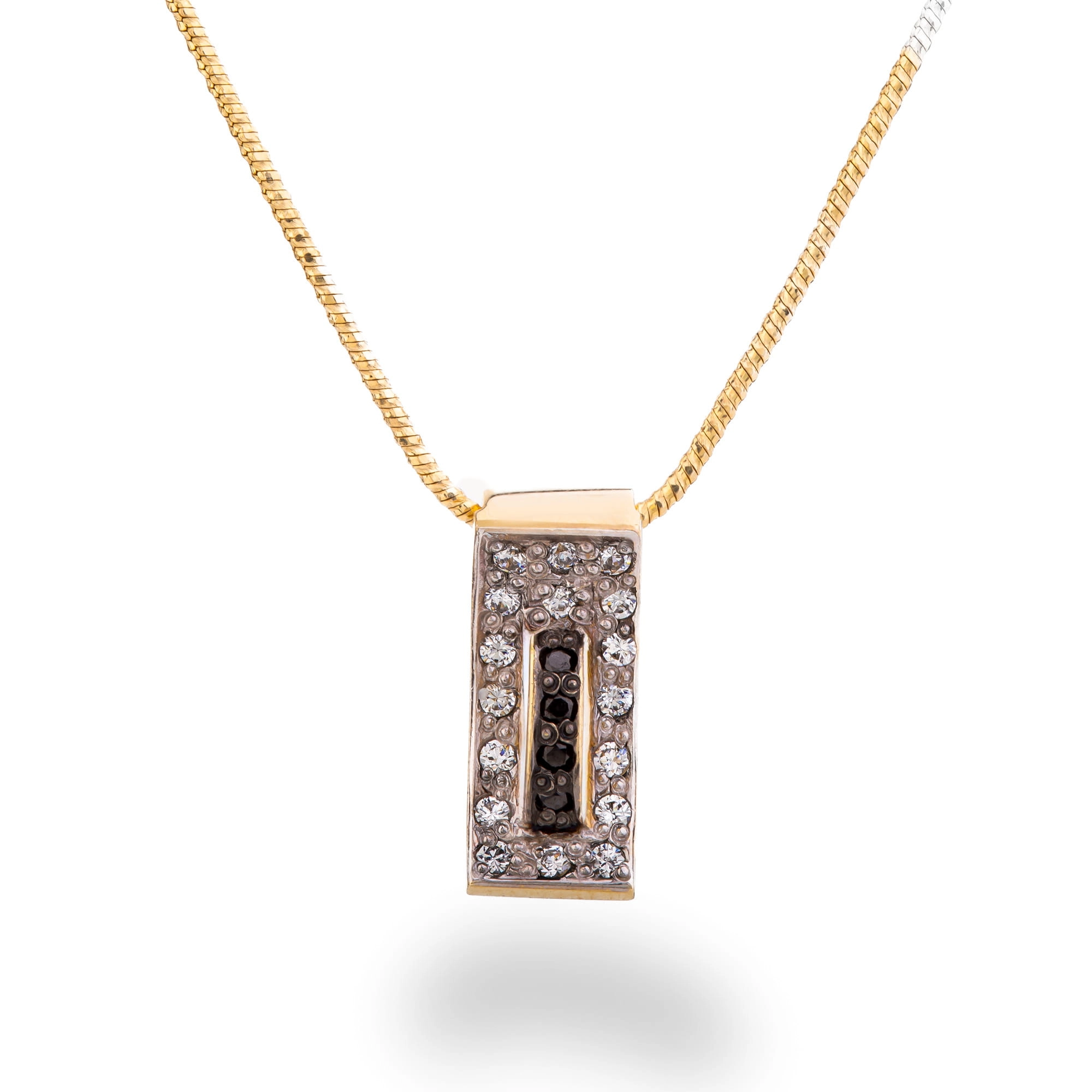 Geometryczna złota 585 zawieszka z czarnymi cyrkoniami (14K) - NOVADI