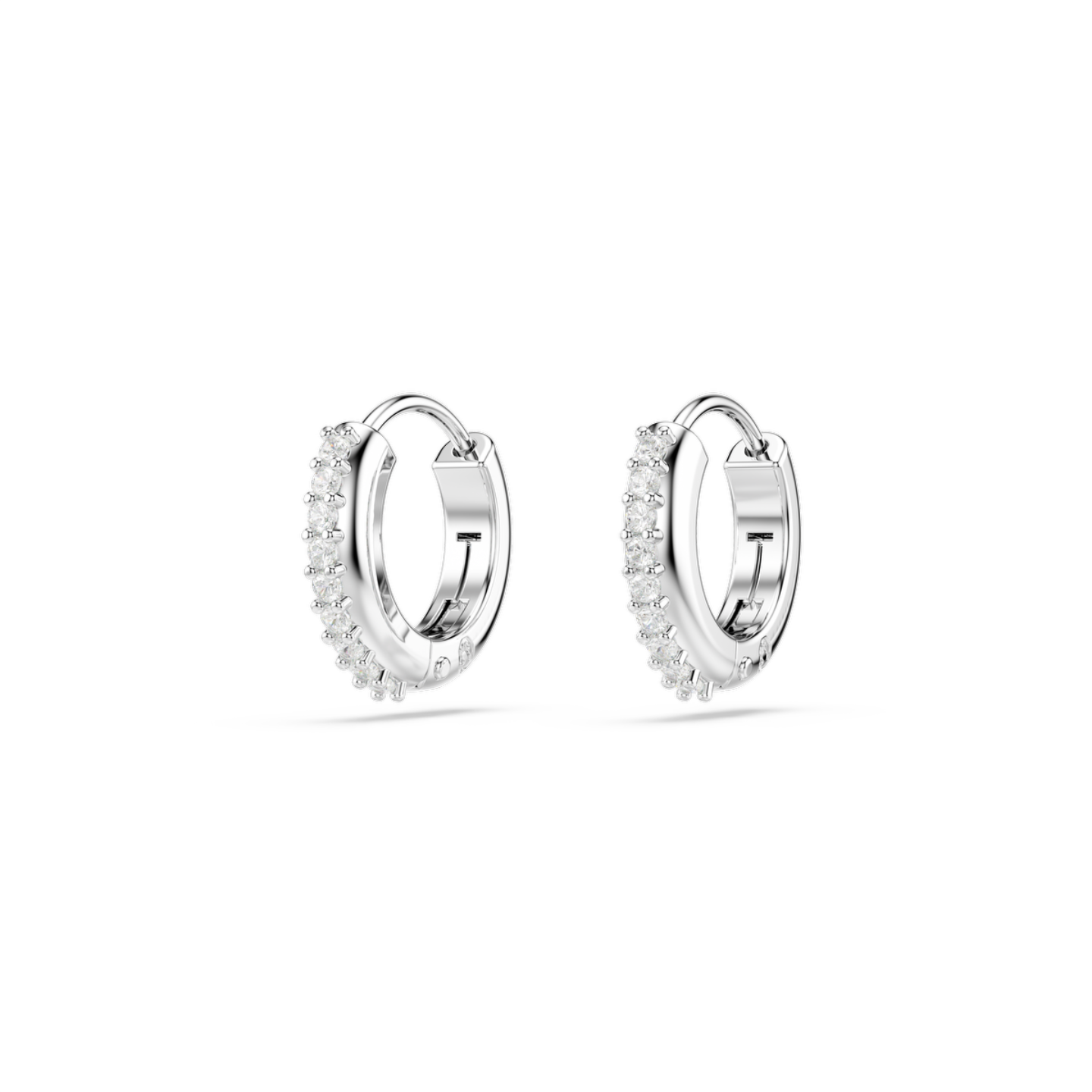 Załóż roziskrzone minikolczyki kreole i pobudź swój styl. Kolczyki są pokryte powłoką z rodu i ozdobione po zewnętrznej stronie bezbarwnymi cyrkoniami Swarovskiego w oprawie szatonowej. Łatwy sposób, aby dodać blasku każdej stylizacji.
