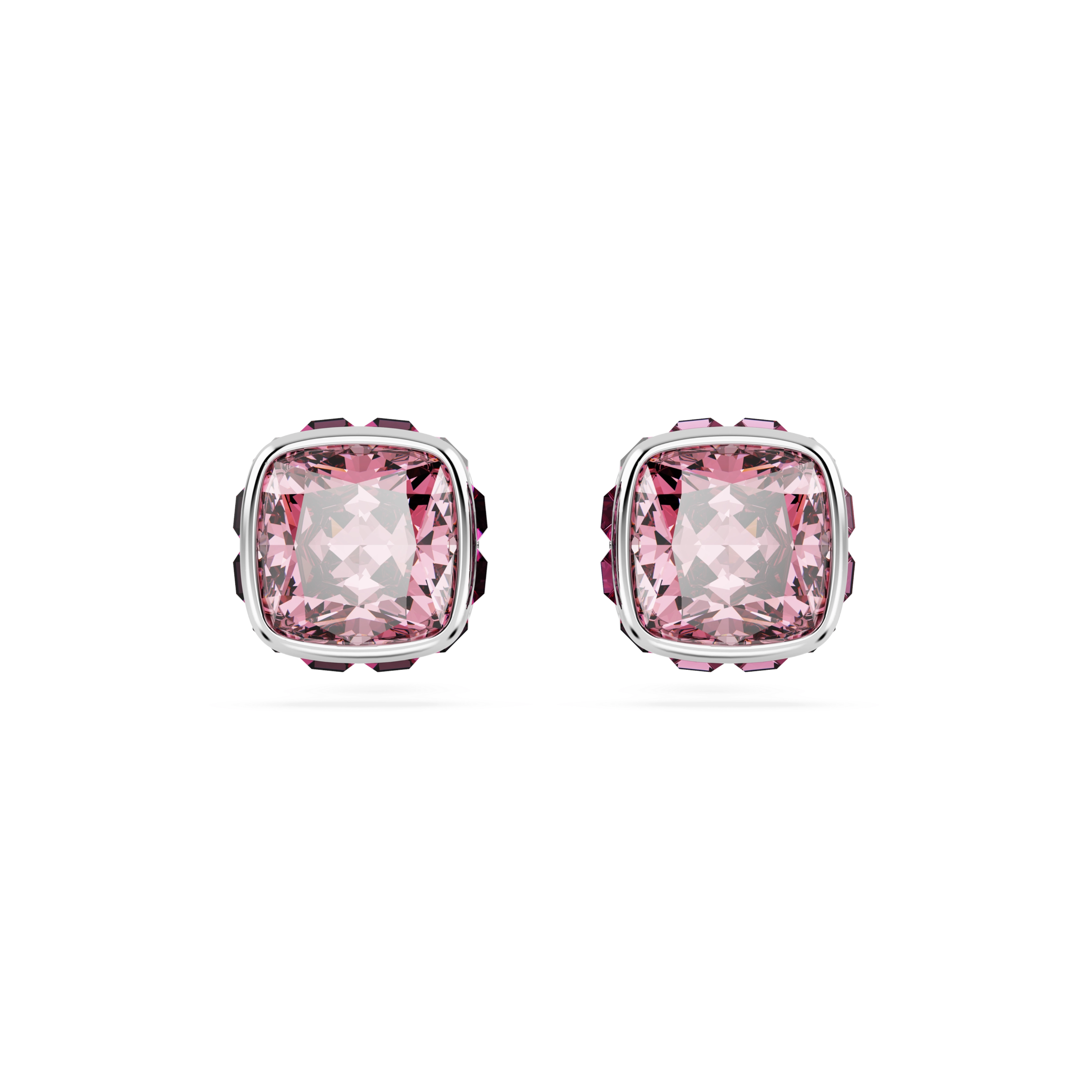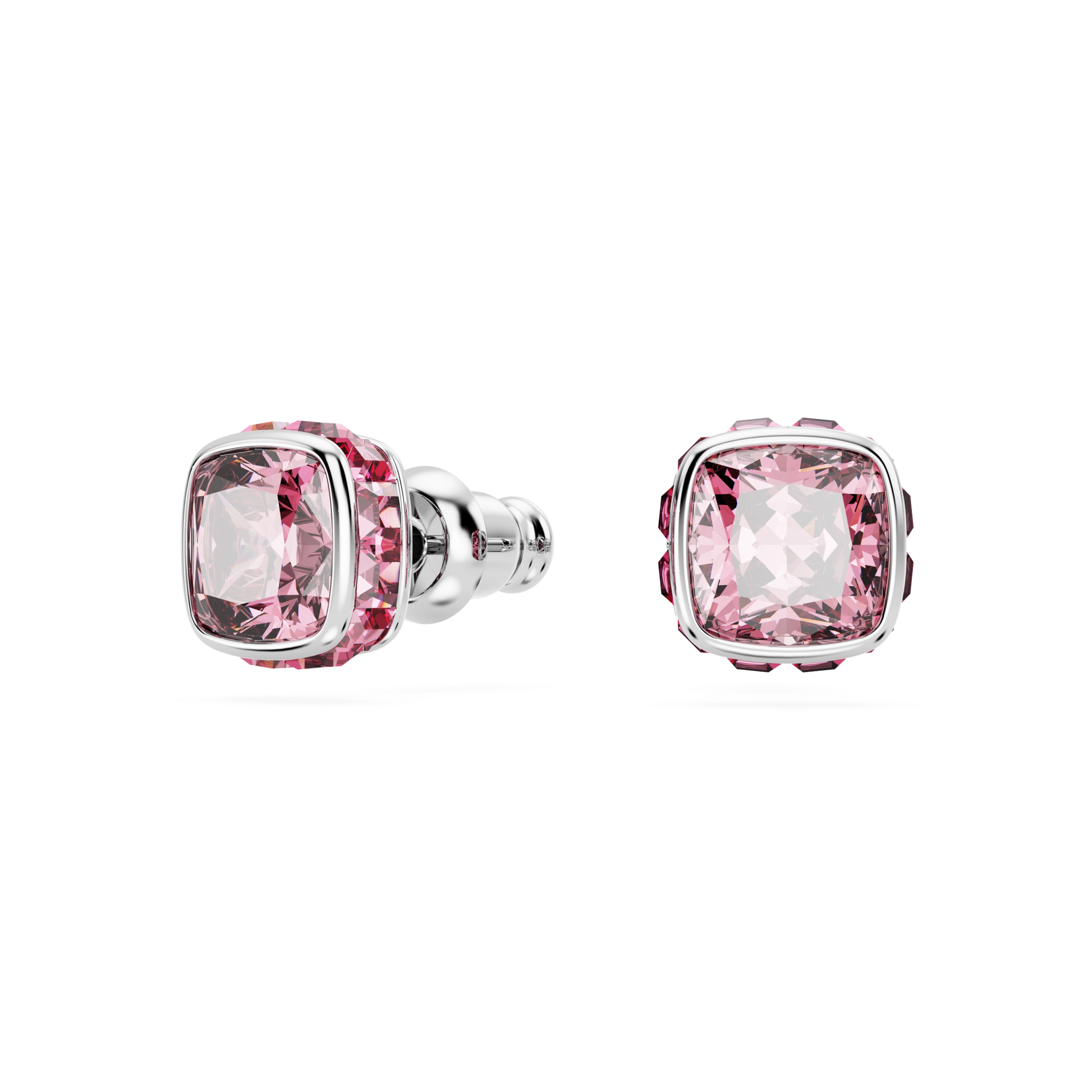 Kolczyki zapinane na sztyft Birthstone, Szlif kwadratowy, Październik, Różowe, Powłoka z rodu