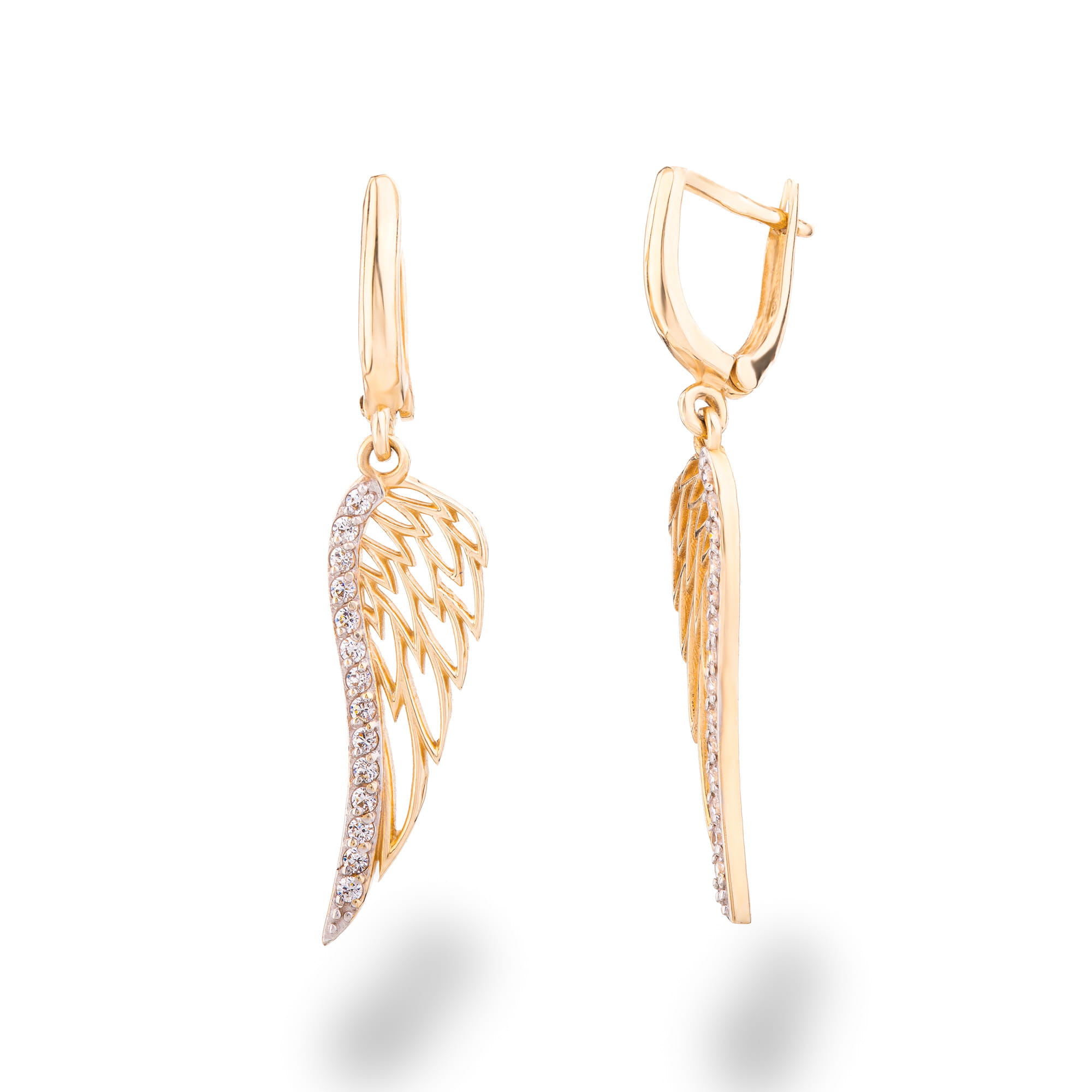 Kolczyki skrzydła złote z cyrkoniami p.585 (14K) - dla dziewczyny
