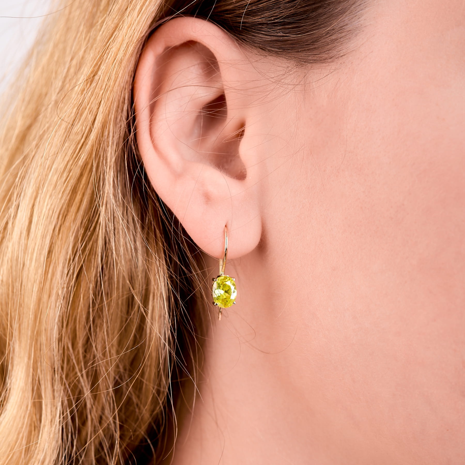Kolczyki złote kamień kolorowy złoto 585 cyrkonia 14K wiszące subtelne