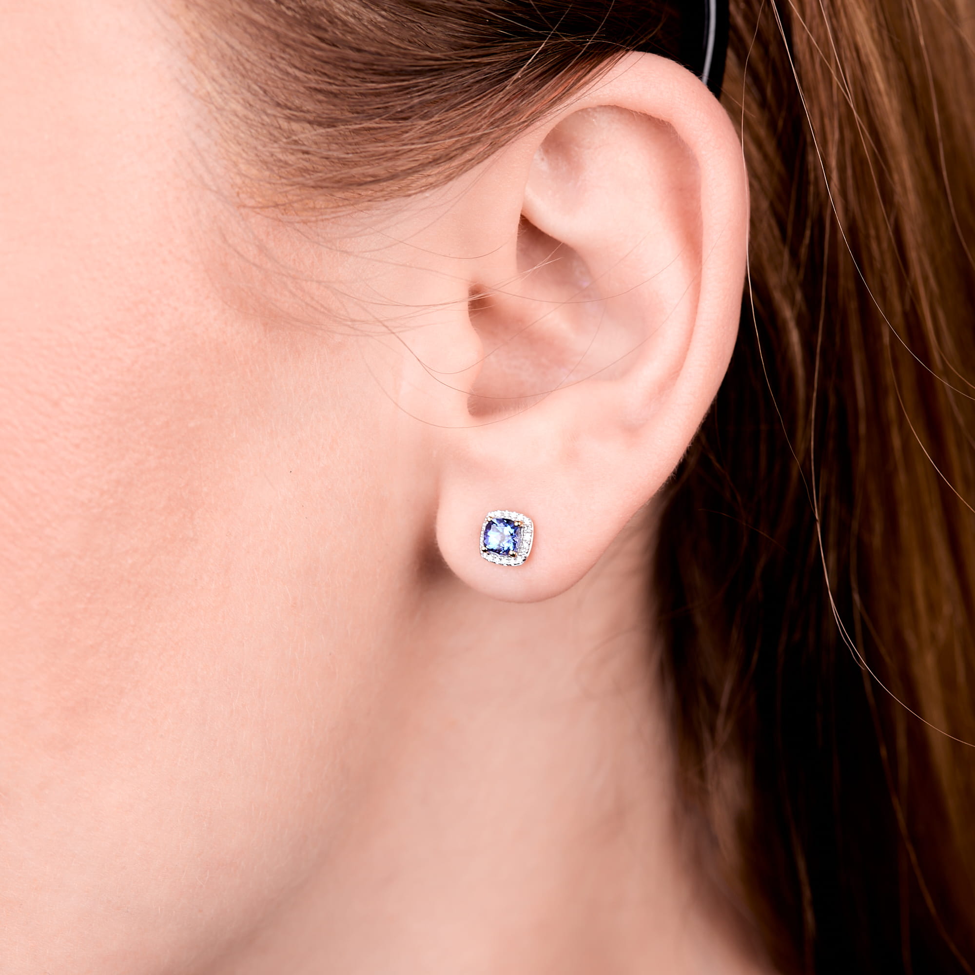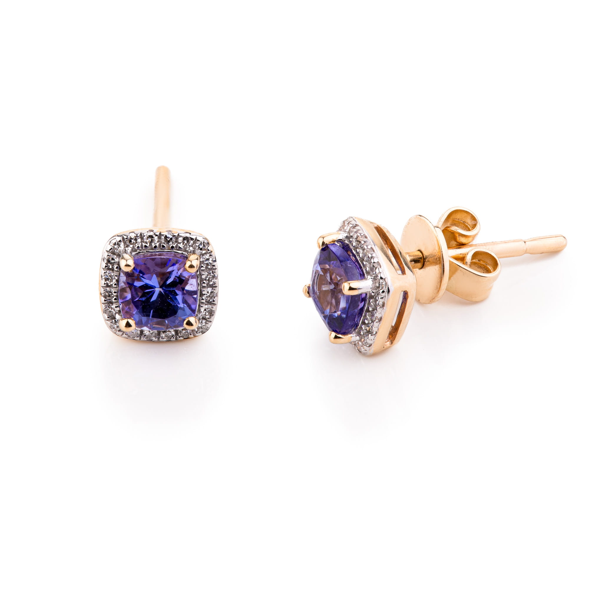 Kolczyki złote p.585 tanzanit 0,73ct diamenty 0,07ct (14K)