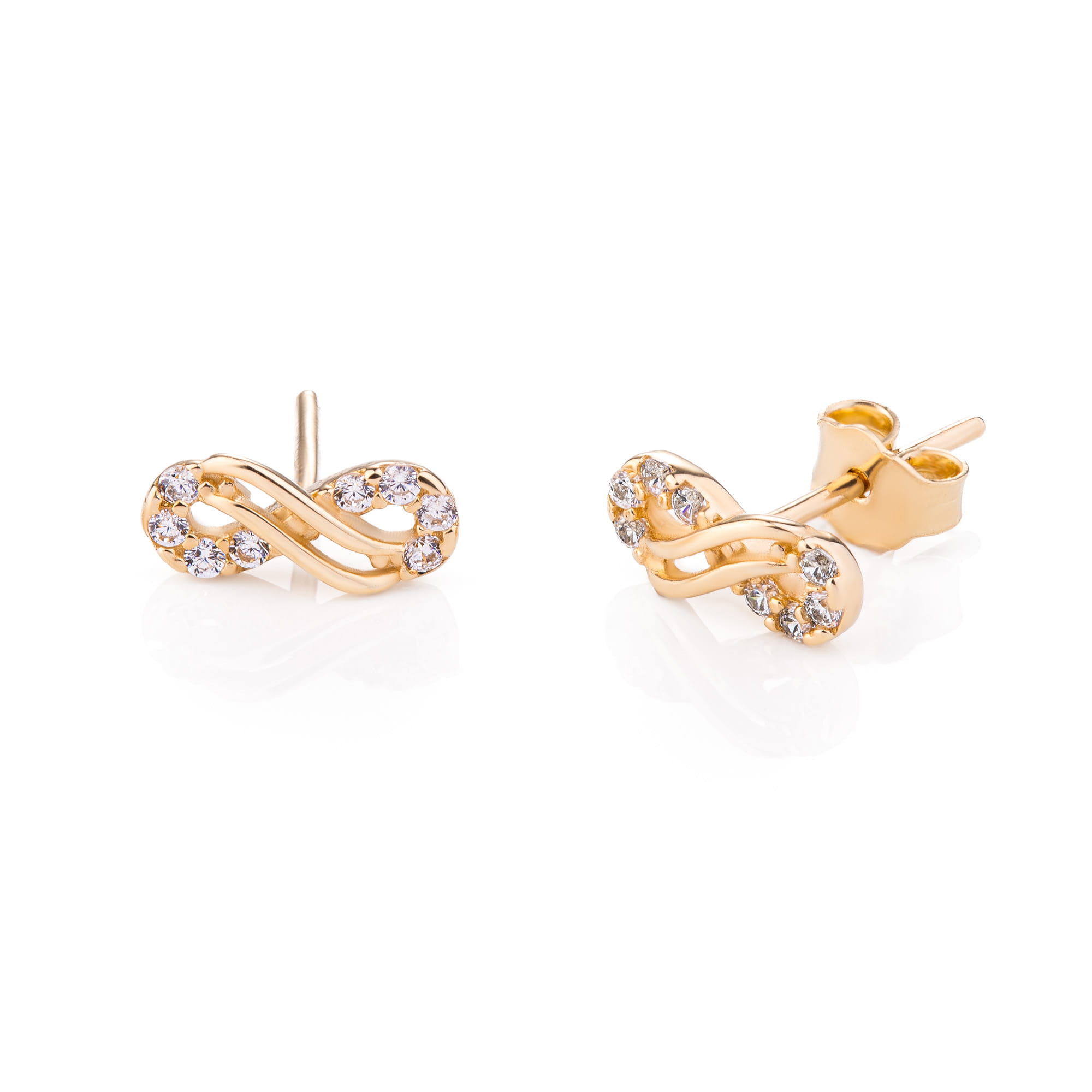 Kolczyki złote znak nieskończoności z cyrkoniami złoto próba 585 14K dziewczęce