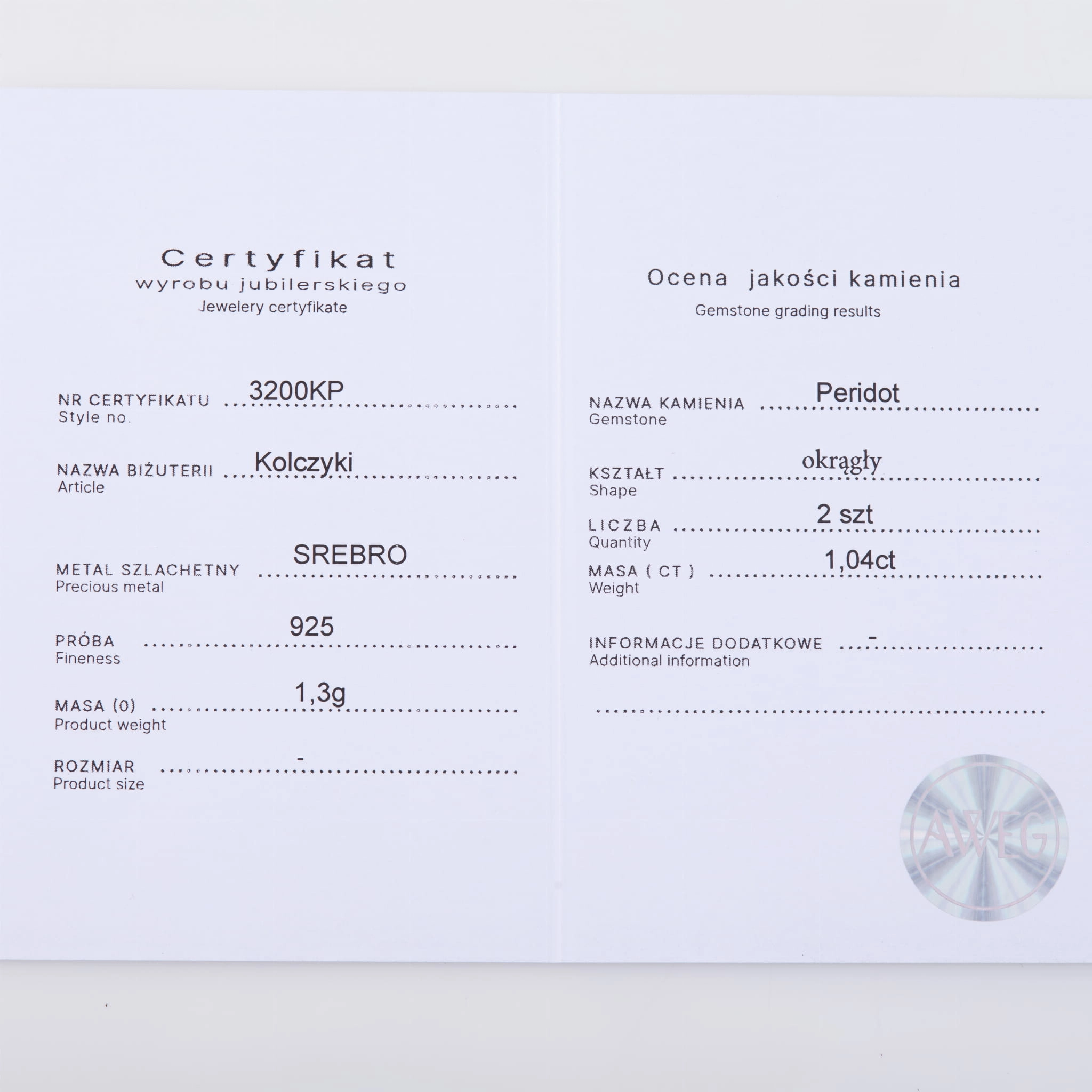 MAŁE KOLCZYKI PERIDOT 1,04CT NATURALNE SREBRNE RODOWANE DAMSKIE SREBRO 925