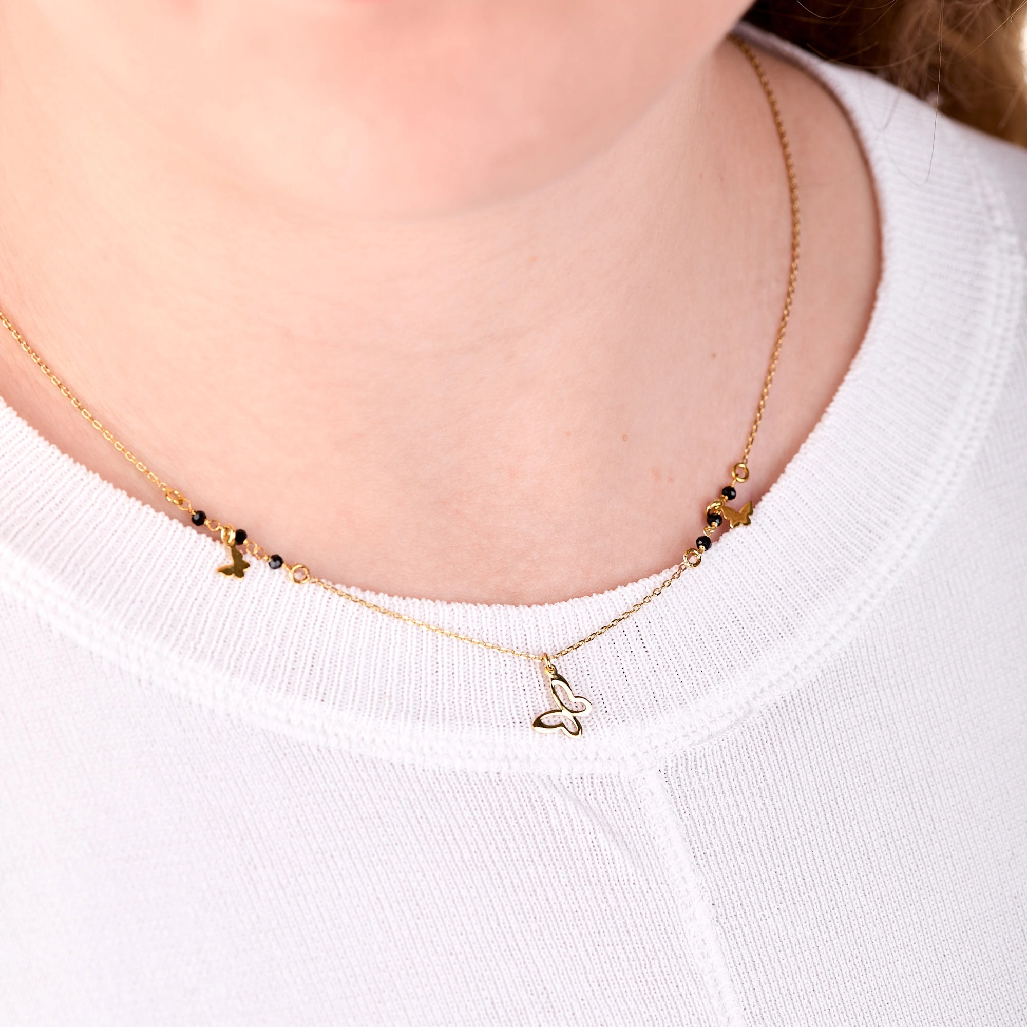 NASZYJNIK POZŁACANY MOTYLKI CELEBRYTKA ZŁOTY 45CM SREBRO 925 POZŁACANE