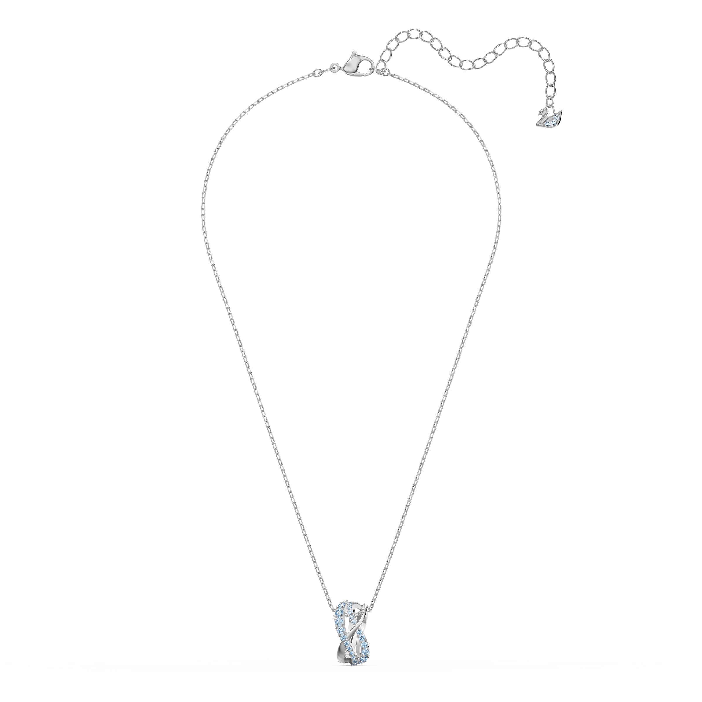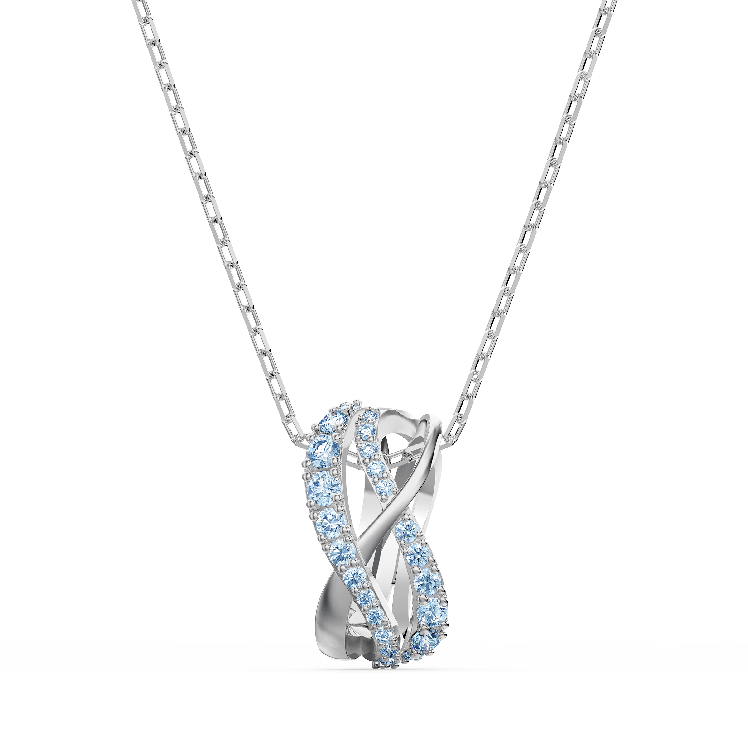 Wisiorek Swarovskiego stworzony z okazji 125-lecia marki — wariacja na temat modnego spiralnego stylu. Migoczące linie pięknie się przeplatają i przyciągają wzrok zdobieniami z ułożonych obok siebie jasnoniebieskich kamieni, które mienią się tęczą barw w promieniach światła. Całość dopełnia dopasowany stylistycznie łańcuszek z zapięciem na karabinek. Piękna ozdoba do codziennych zestawów.