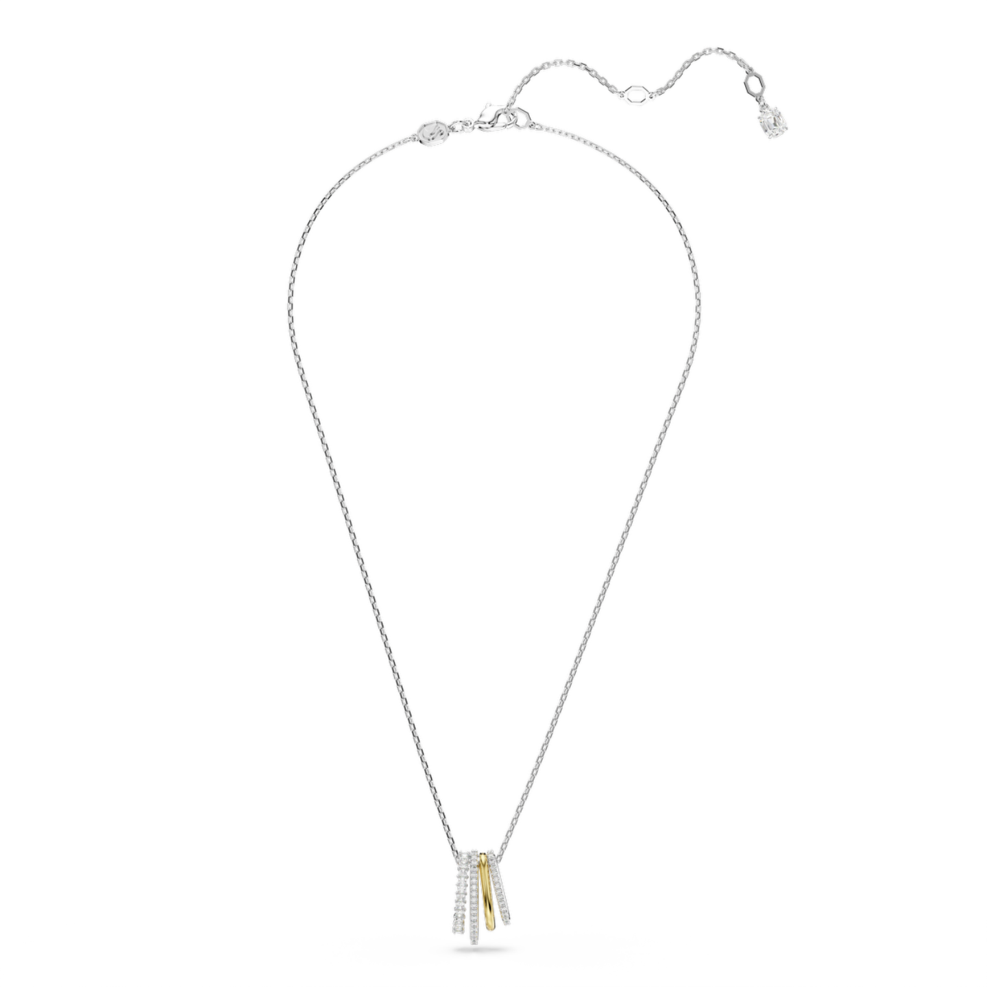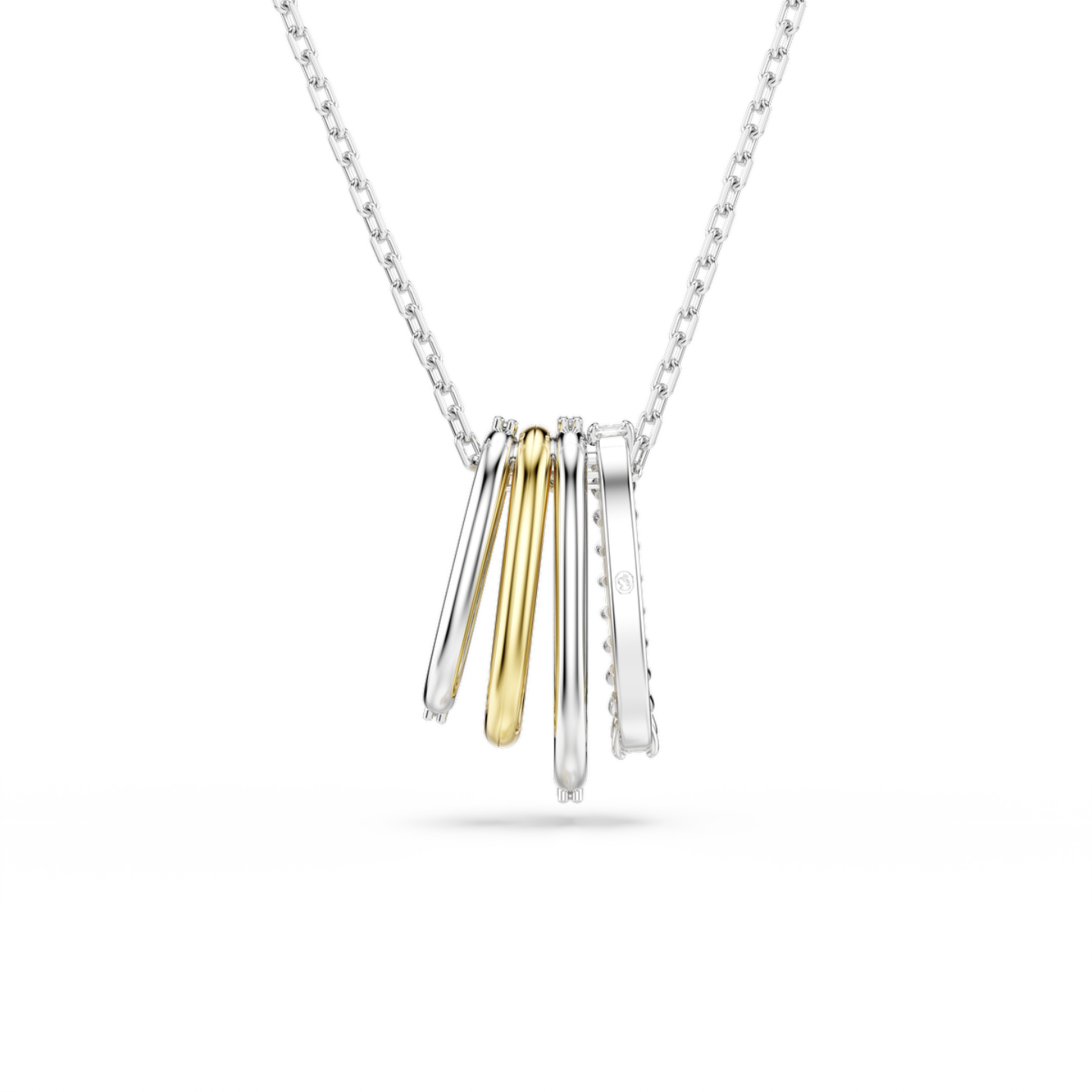 Ten atrakcyjny naszyjnik z wisiorkiem Hyperbola, oparty na połączeniu różnych technik i odcieni, stanowi wyjątkową interpretację wyrafinowanego luksusu. Zawieszone na eleganckim łańcuszku cztery małe obręcze z powłokami z rodu i w odcieniu złota są upiększone cyrkoniami Swarovskiego w szlifie okrągłym i kwadratowym w oprawie szatonowej. Uzupełnienie stylizacji o pasującą bransoletkę typu bangle lub kolczyki zapewni efekt pełen przepychu.