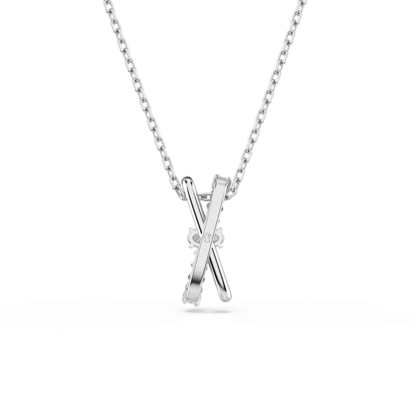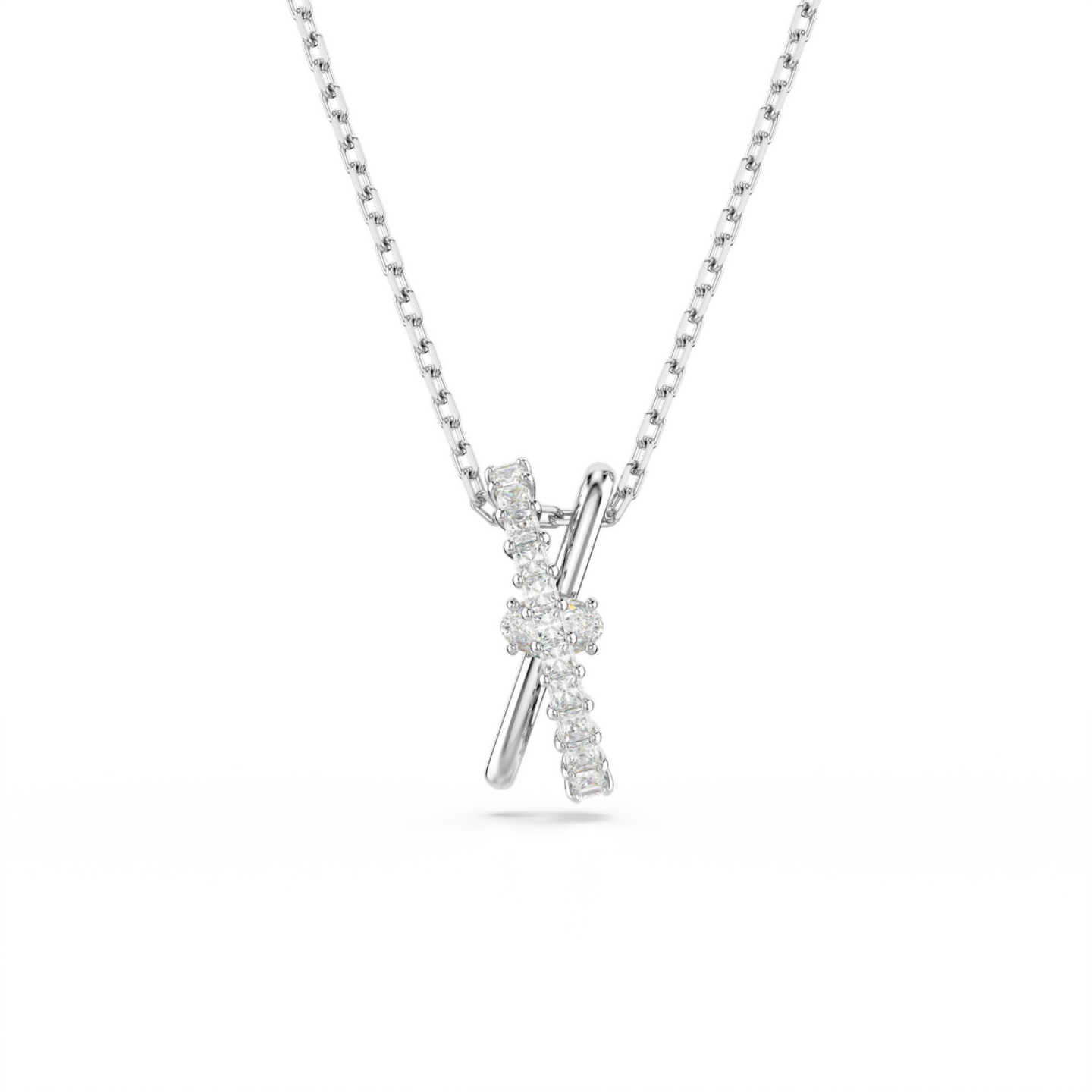 Ten urzekający naszyjnik z wisiorkiem Hyperbola, będący efektownym przykładem savoir-faire firmy Swarovski, jest wykonany z dwóch obręczy z powłoką z rodu i ozdobiony z jednej strony bezbarwnymi cyrkoniami Swarovskiego w oprawie szatonowej. Dla spotęgowania blasku pośrodku umieszczona została pojedyncza cyrkonia Swarovskiego w szlifie owalnym. Ta wysublimowana ozdoba świetnie wygląda z pasującą do niej bransoletką typu bangle.