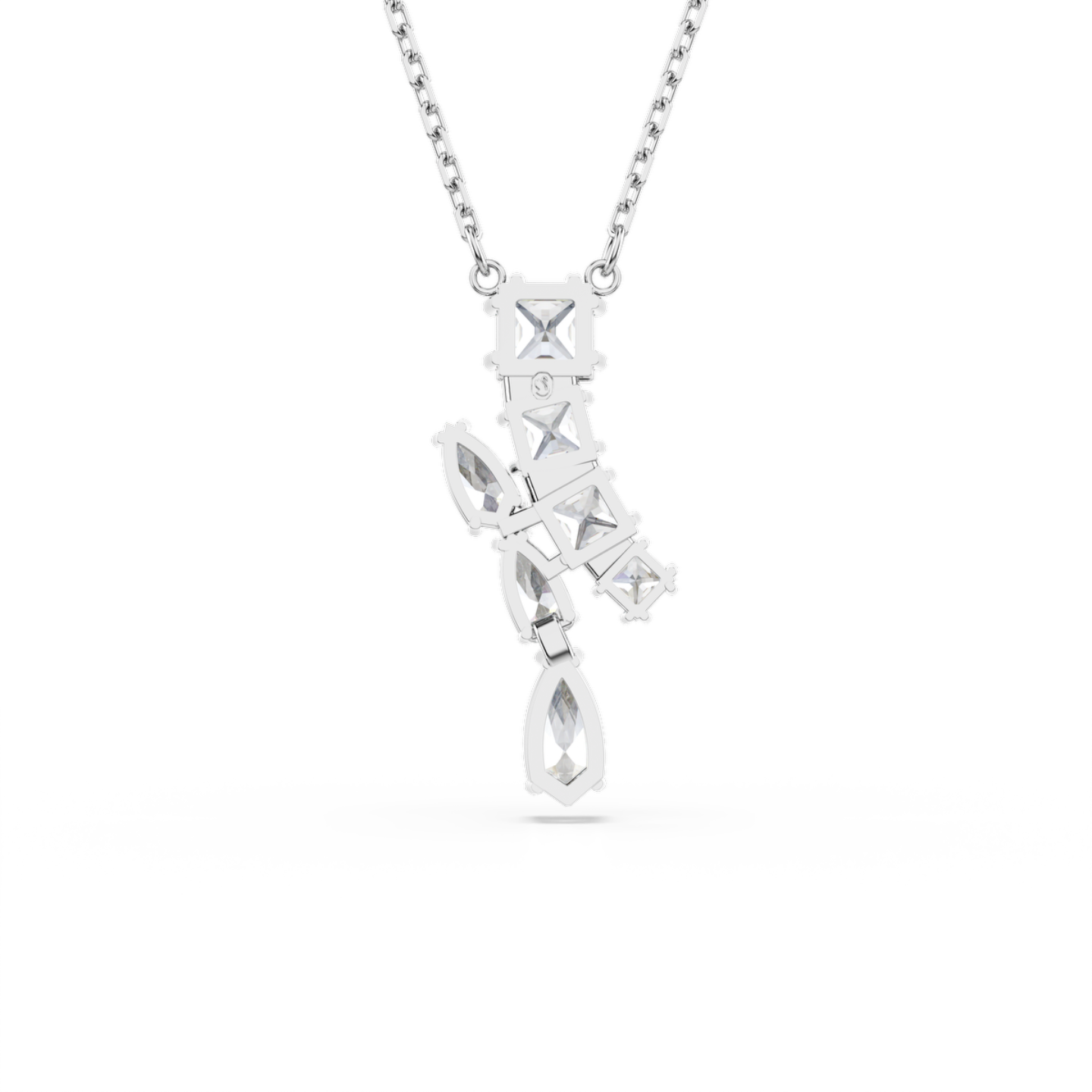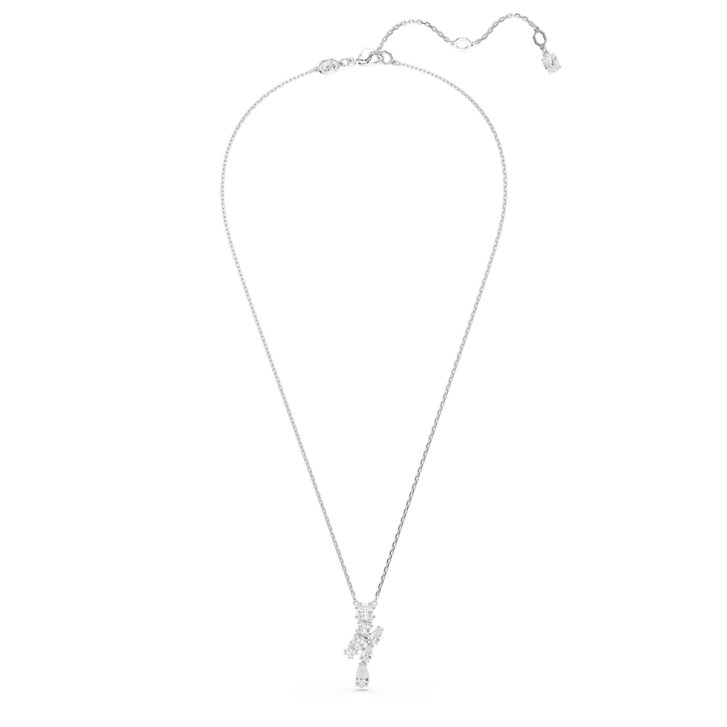 Przepiękny naszyjnik Matrix jest zachwycającym przykładem kunsztu firmy Swarovski w dziedzinie obróbki kryształów. Na eleganckim łańcuszku z zapięciem na karabinek umieszczono pokryty powłoką z rodu wisiorek ozdobiony kompozycją cyrkonii Swarovskiego o różnym kształcie, precyzyjnie osadzonych w oprawie szatonowej. Połącz tę ozdobę z pasującymi kolczykami, aby zalśnić pełnym blaskiem.
