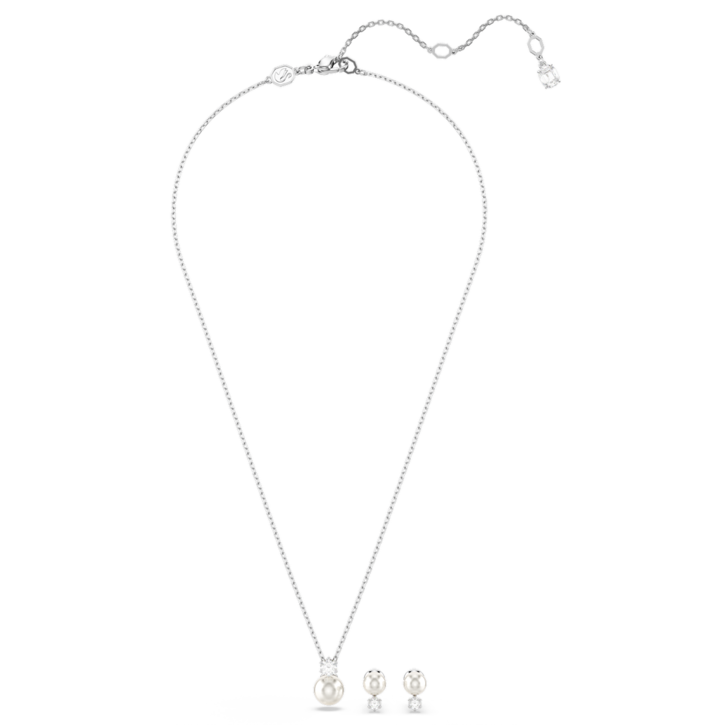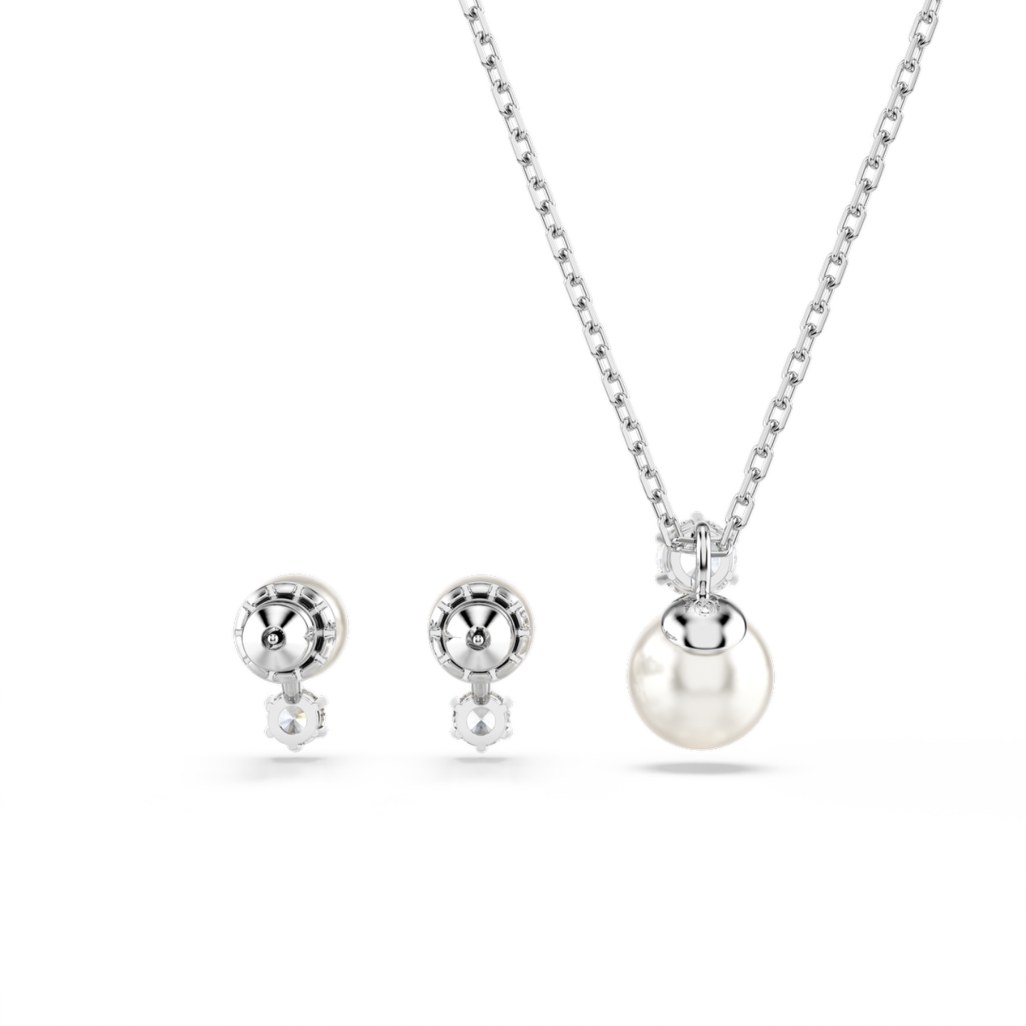 Te piękne ozdoby z rodziny Matrix to naprawdę kultowy komplet, obejmujący naszyjnik z wisiorkiem oraz pełne blasku kolczyki. Wisiorek, zawieszony na eleganckim łańcuszku z powłoką z rodu, składa się z pojedynczej białej kryształowej perły Swarovskiego i cyrkonii Swarovskiego w szlifie okrągłym. Taka sama zachwycająca kompozycja zdobi każdy z kolczyków na sztyfcie. Ta biżuteria założona do T-shirtu i dżinsów zapewni atrakcyjny wygląd w niewymuszonym stylu.