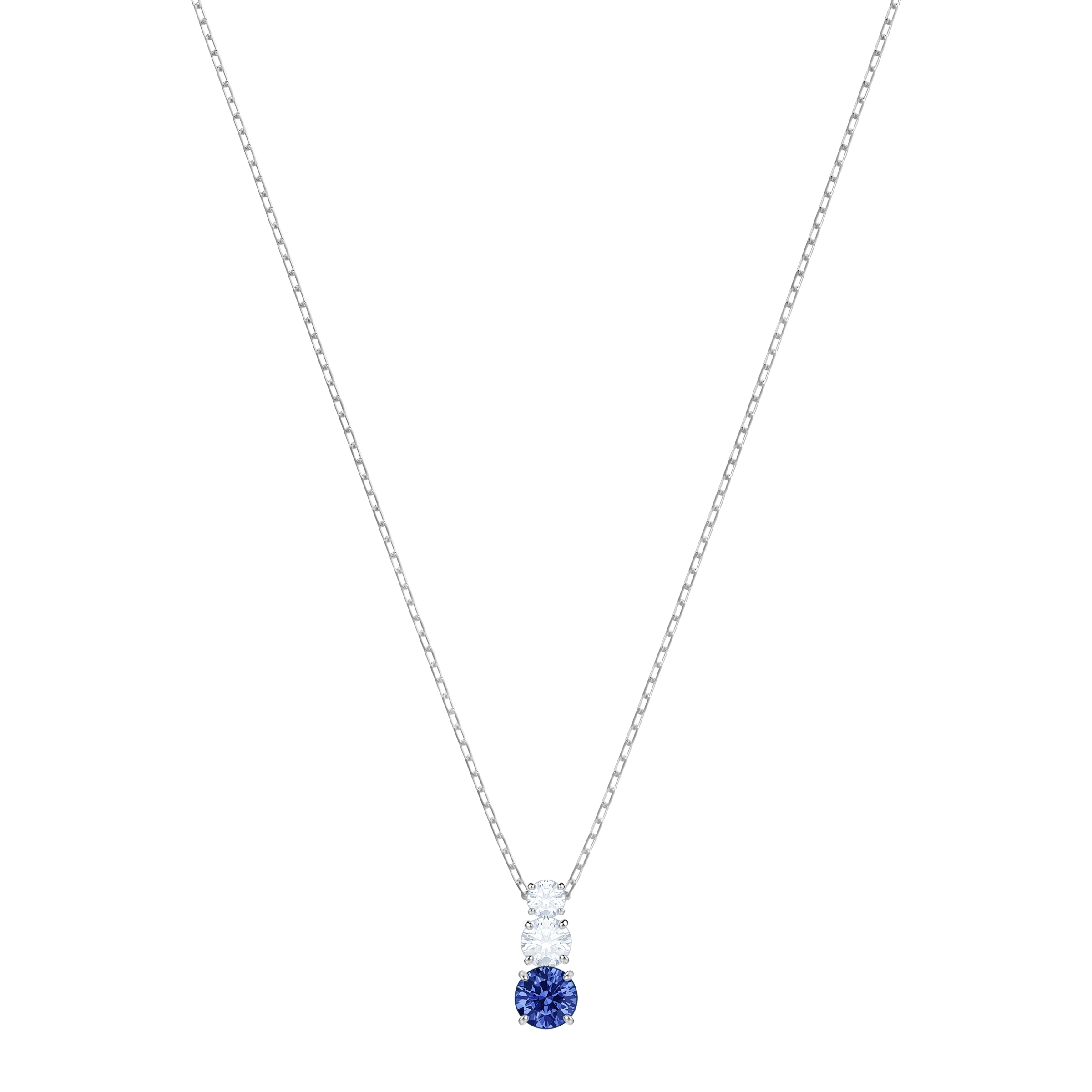 Efektowny wisiorek z kolekcji Stilla Attract symbolizującej nierozerwalność przeszłości, teraźniejszości i przyszłości. Inspirowany koncepcją nieprzemijającej miłości romantyczny wzór o ponadczasowej elegancji. Dwa bezbarwne kryształy dopełnia trzeci kryształ w naszym nowym, ciemnoniebieskim odcieniu. Ozdobę zawieszono na łańcuszku powlekanym rodem. Ten model to klasyczna biżuteria o dużym ładunku emocjonalnym — idealny prezent dla ukochanej osoby. W ofercie dostępne są dopasowane kolczyki sztyftowe i pierścionek.