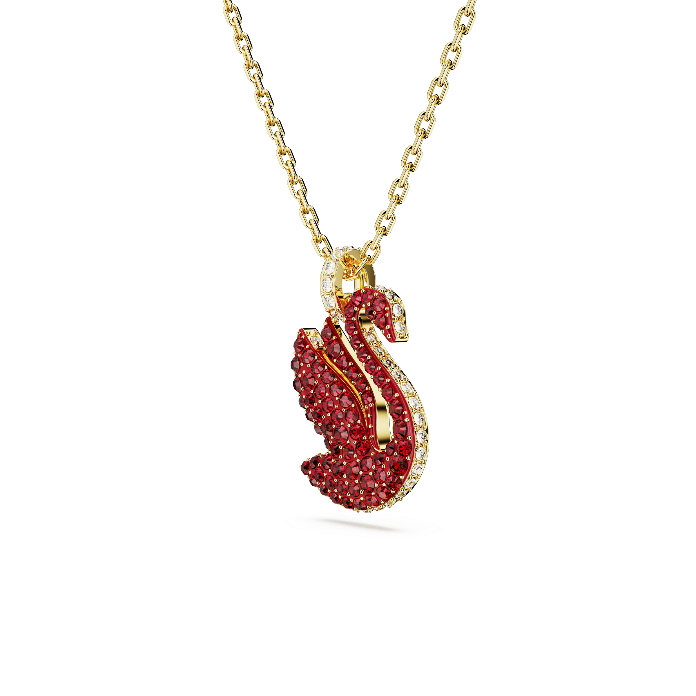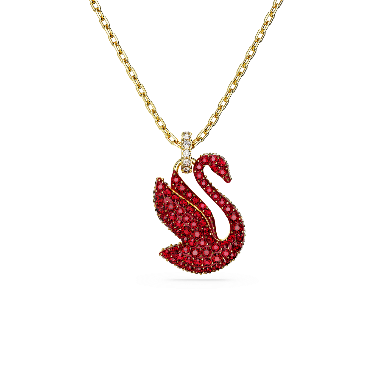 Ten naszyjnik z wisiorkiem ukazuje zupełnie inne spojrzenie na kultowe logo Swarovski Swan dzięki przynoszącym pomyślność czerwonym kryształom w oprawie brukowej. Ozdoba zawieszona jest na łańcuszku z powłoką w kolorze złota. To prawdziwie urzekająca biżuteria, która podkreśli charakter Twoich stylizacji żywym akcentem kolorystycznym. Będzie również wspaniałym pomysłem na wyjątkowy prezent.