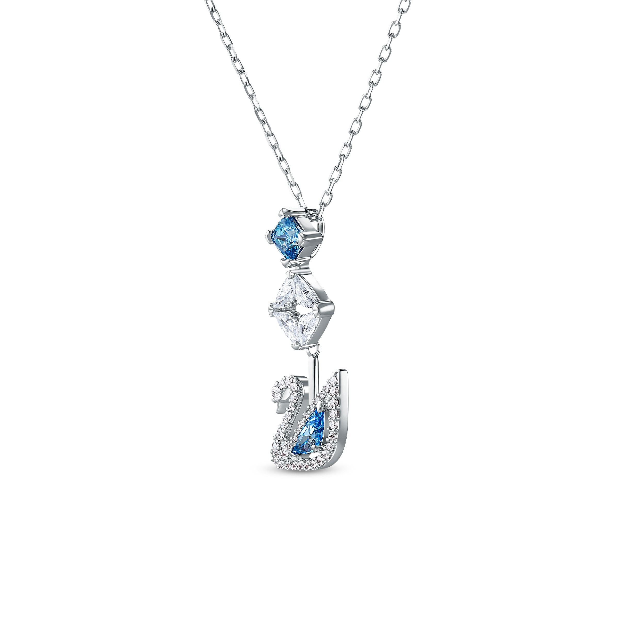 Naszyjnik Swan, Łabędź, Niebieski, Powłoka z rodu