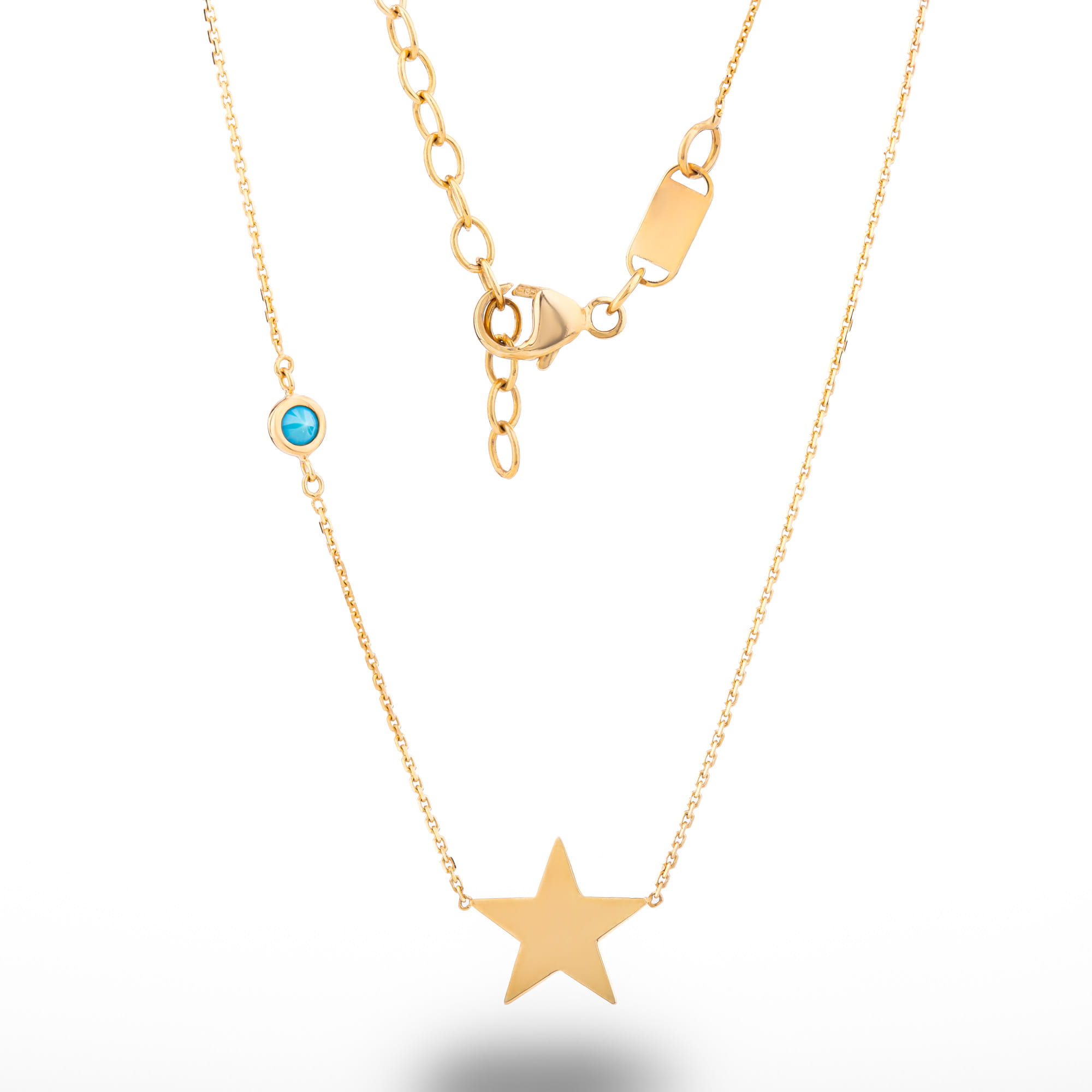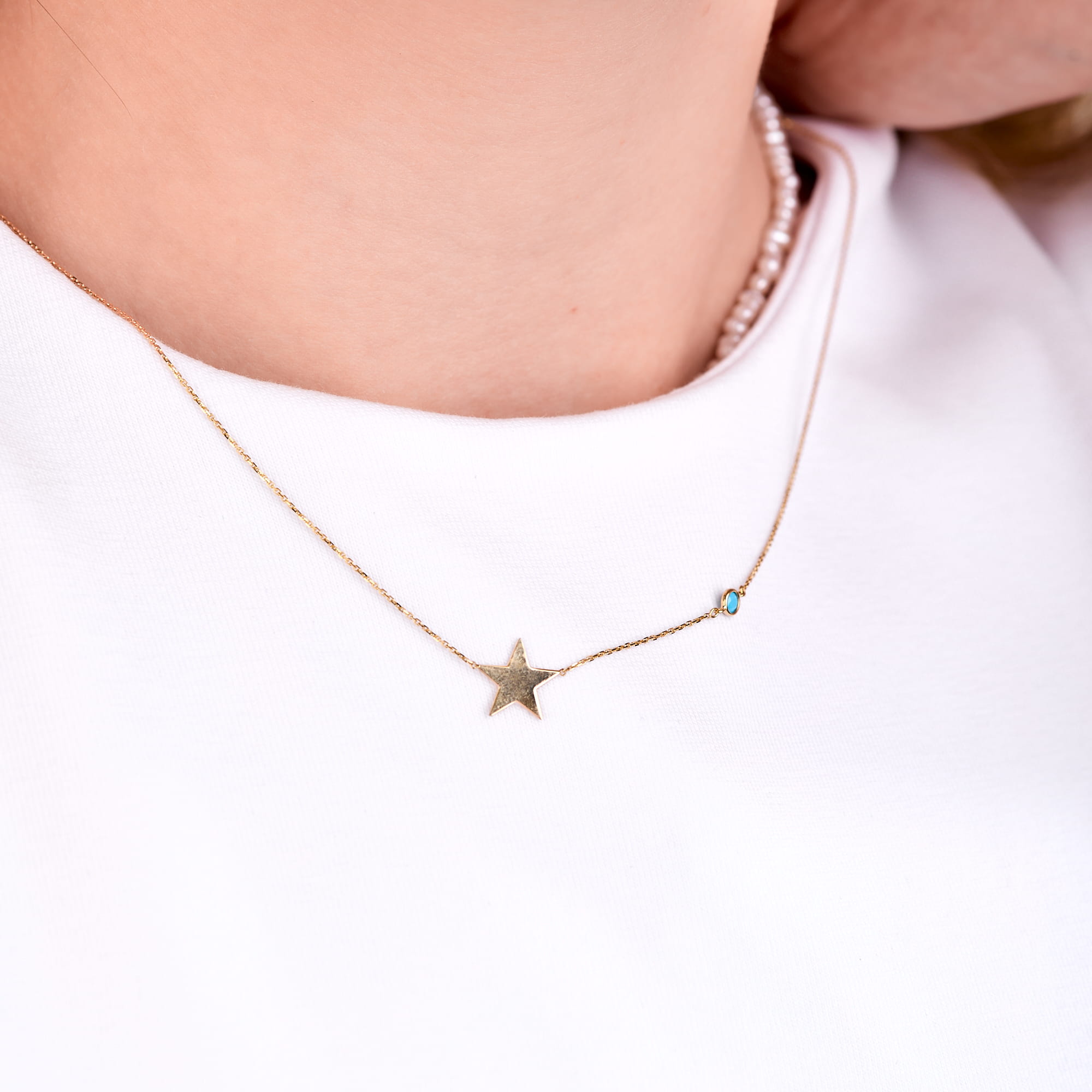 Naszyjnik celebrytka złoty p.585 z turkusem i gwiazdą 45cm
