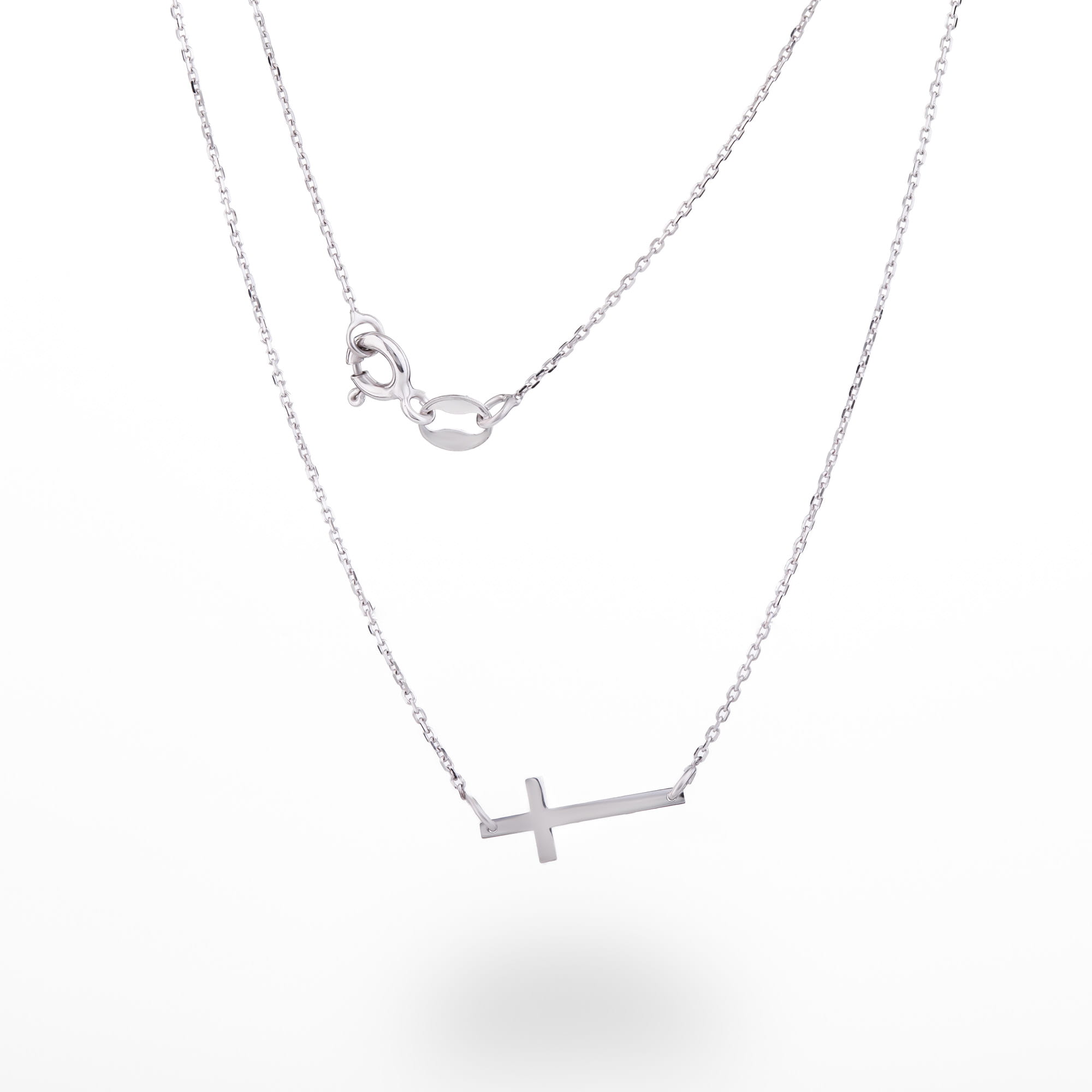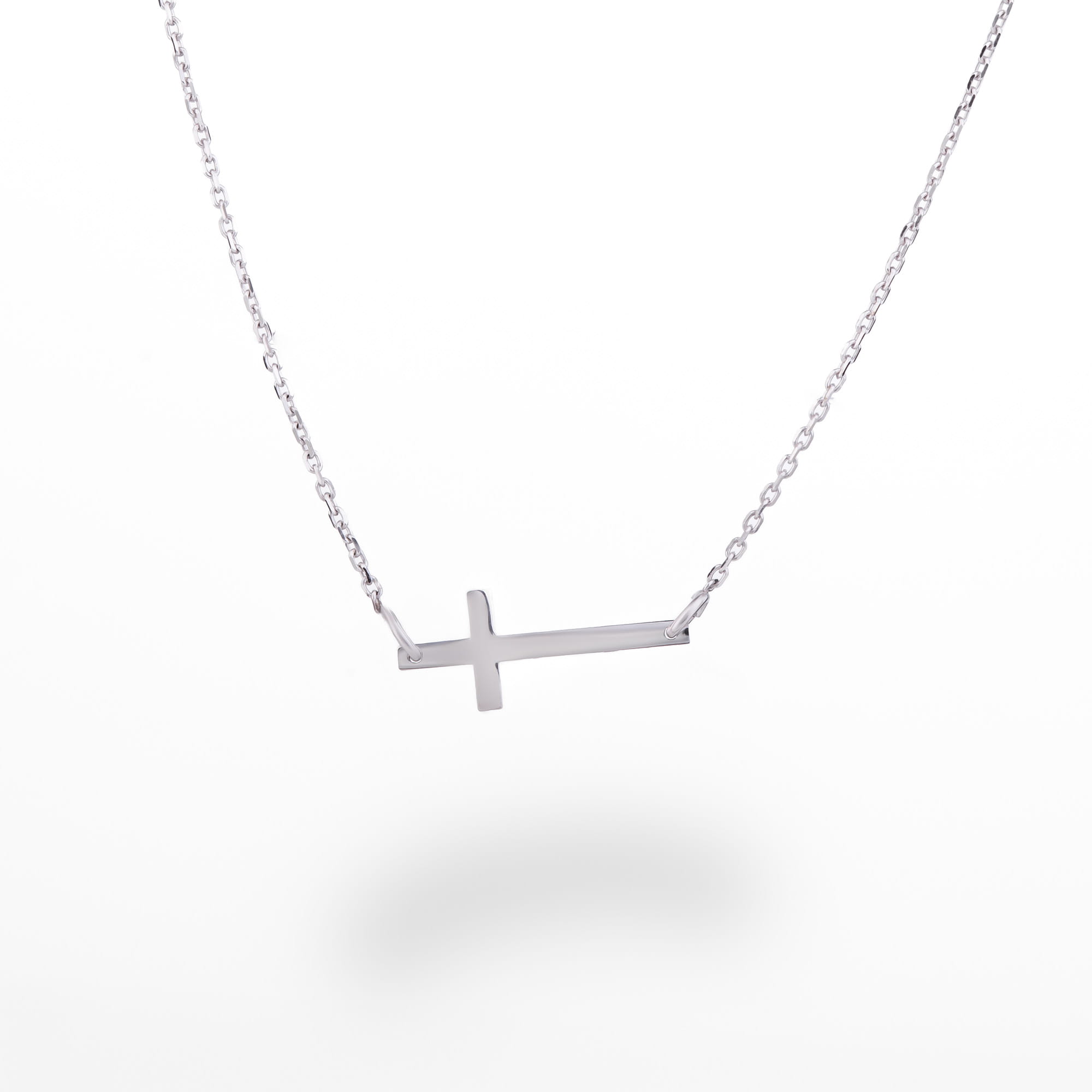 Naszyjnik z białego złota z krzyżykiem - delikatny elegancki - złoto 585 14K