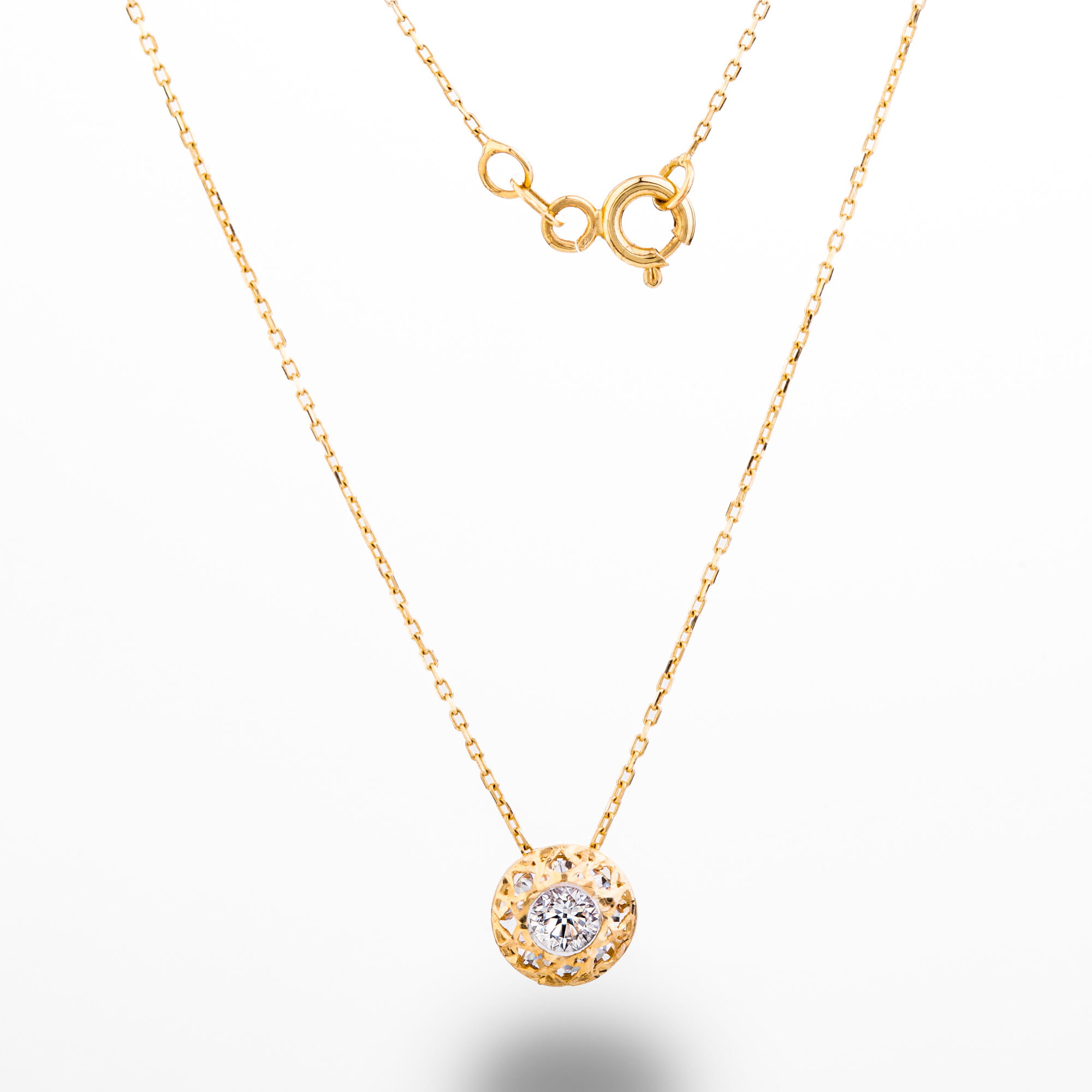 Naszyjnik ze złota p.585 i cyrkonie (14K), 45cm długość złoto585