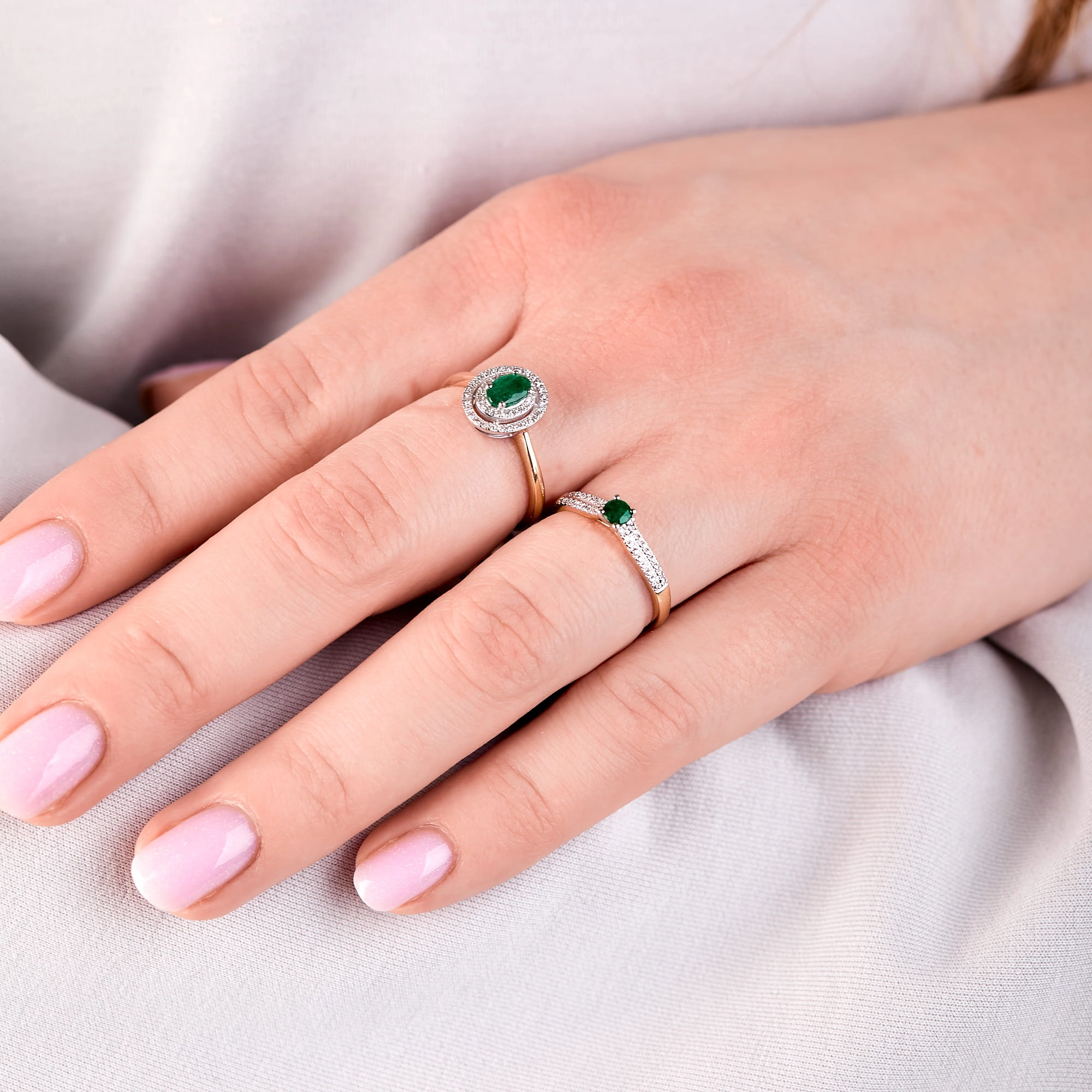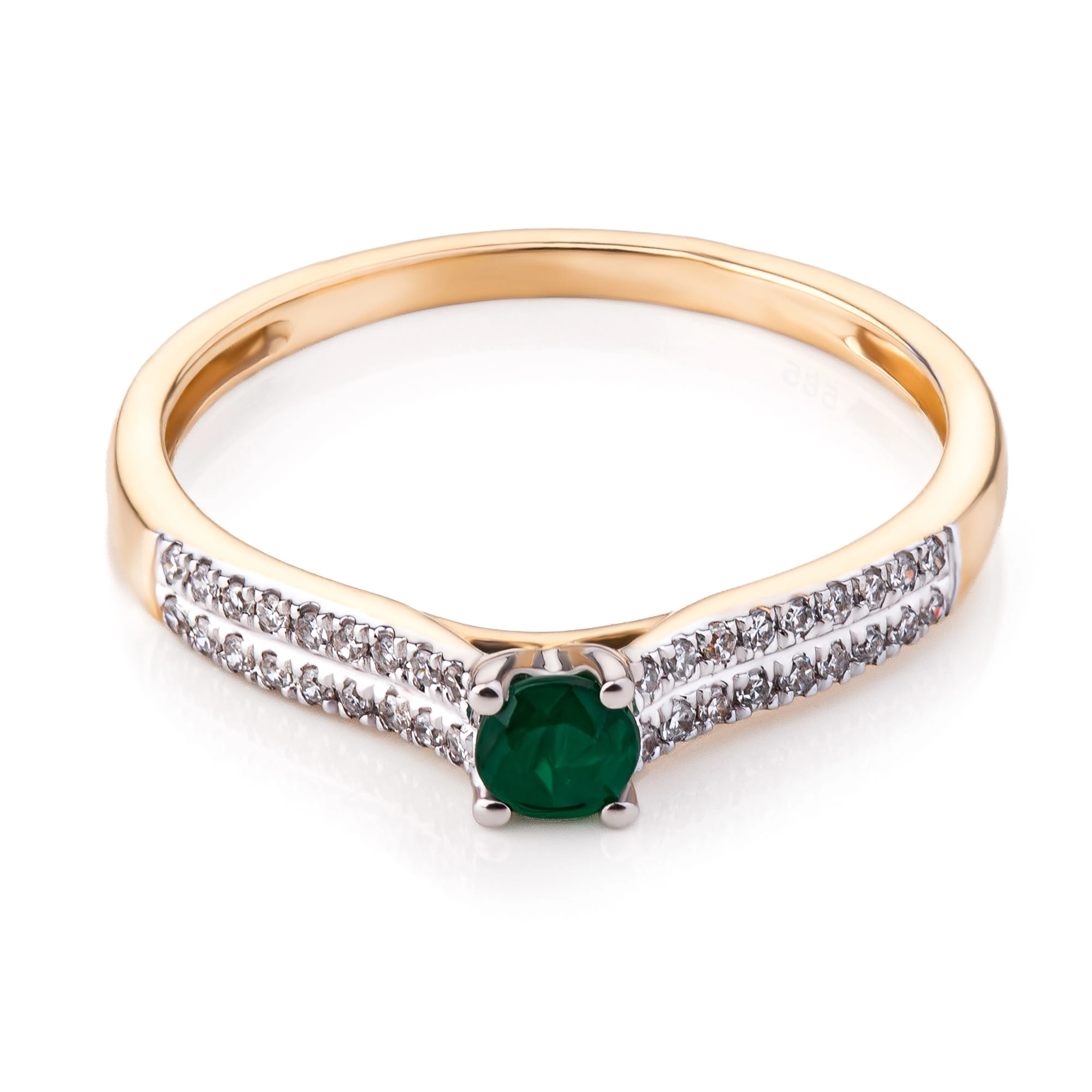 PIERŚCIONEK ZARĘCZYNOWY ZŁOTY SZMARAGD BRYLANTY ROZMIAR 14 ZŁOTO 585