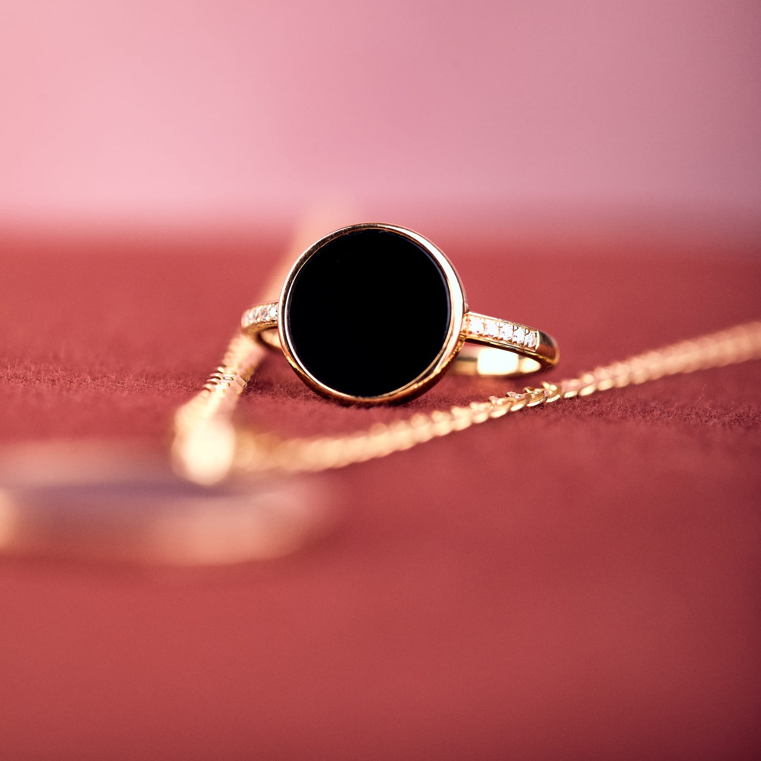 PIERŚCIONEK ZŁOTY 585 Z ONYKSEM DAMSKI ROZMIAR 16 ZŁOTO 585 KAMIEŃ ONYKS