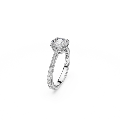 Pierścionek koktajlowy Stilla, Szlif okrągły, Oprawa brukowa, Biały, Powłoka z rodu