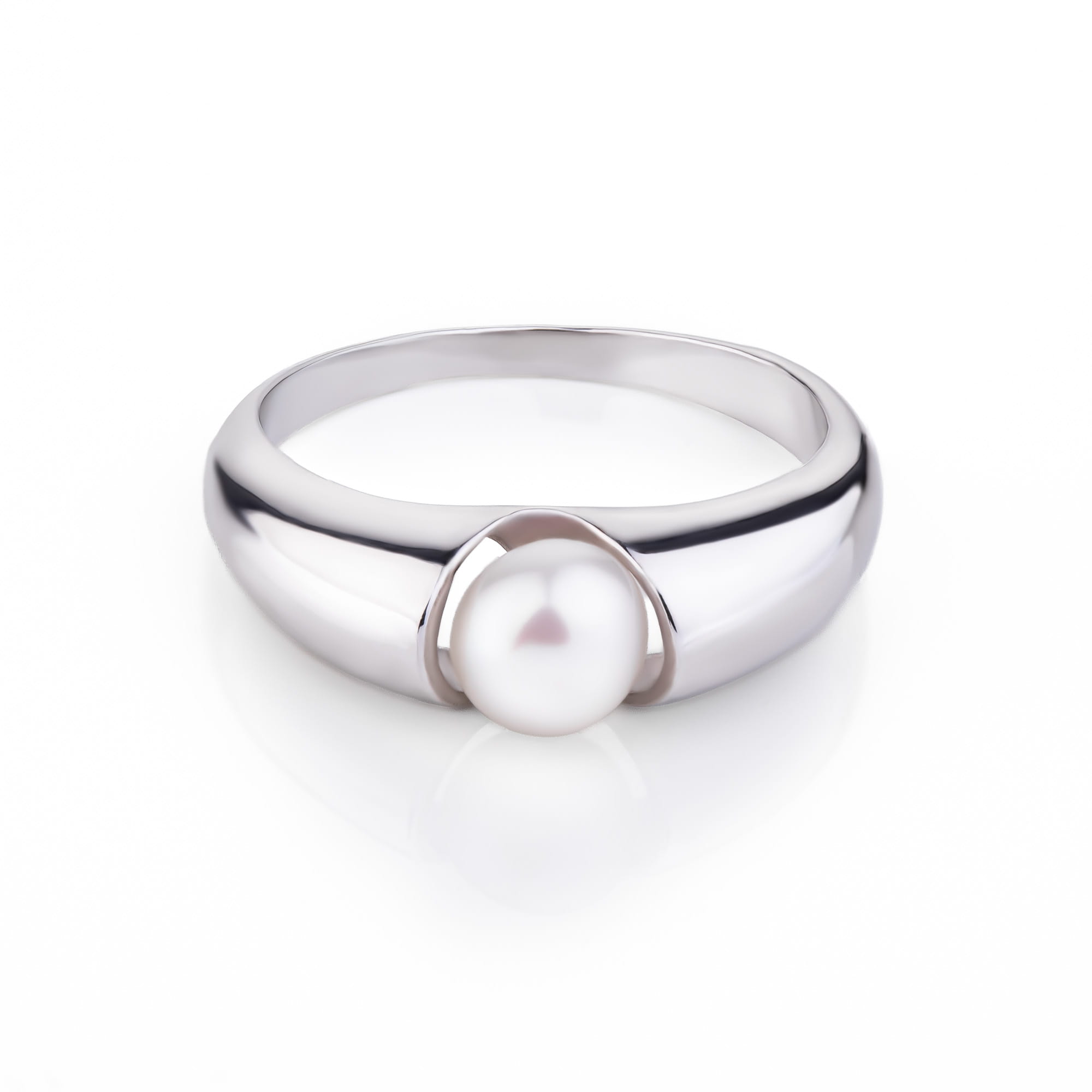 Pierścionek z białego złota 585 14K z naturalną perłą elegancki damski