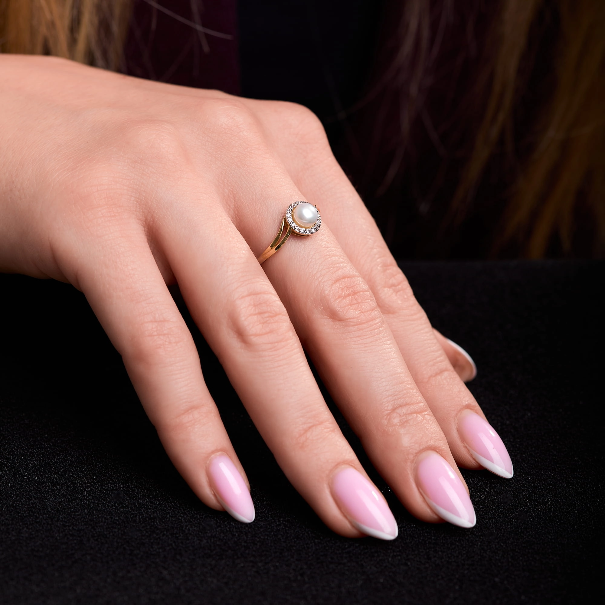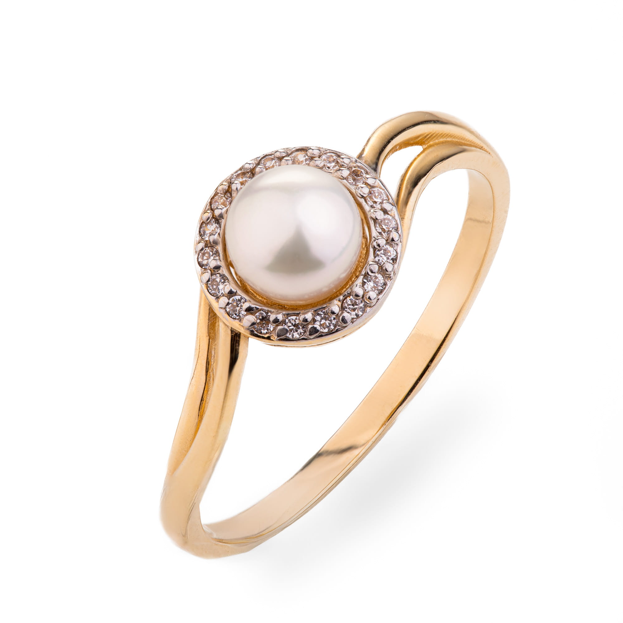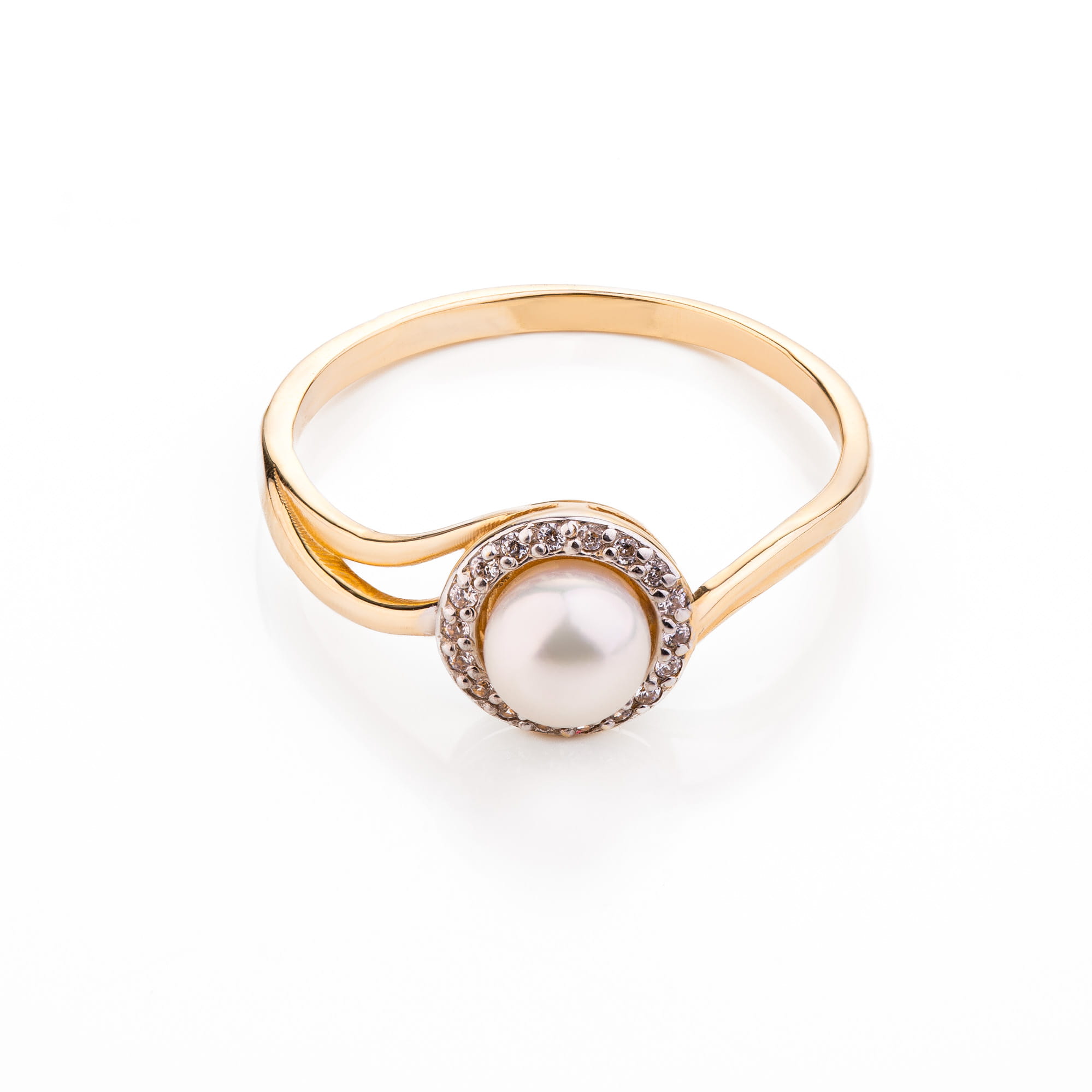 Pierścionek z perłą i cyrkoniami - złoto p.585 (14K), roz. 19
