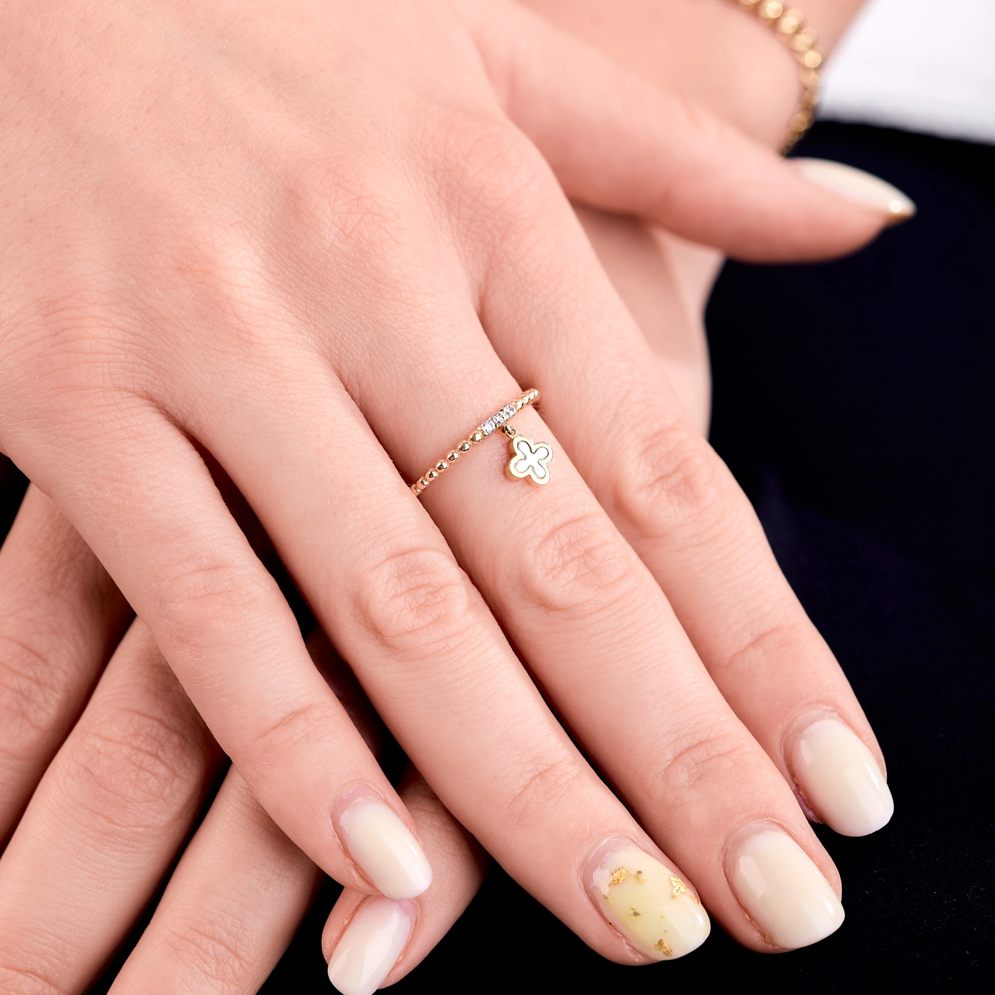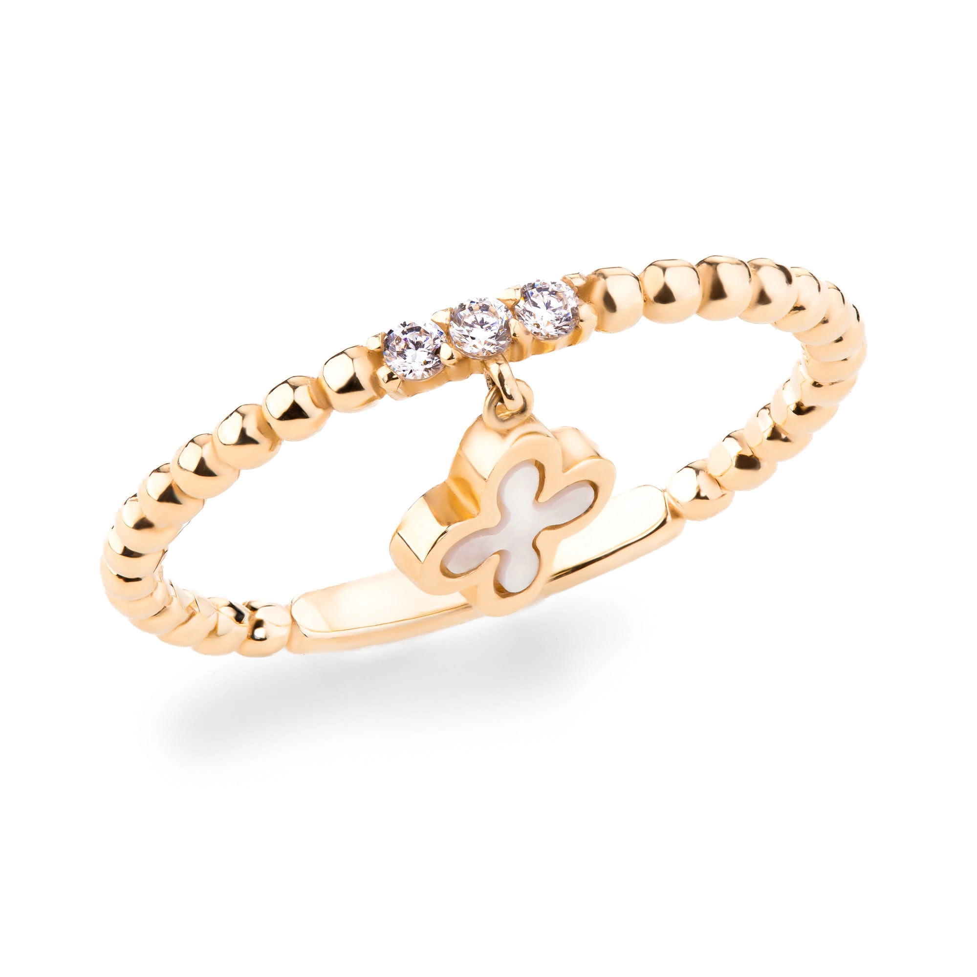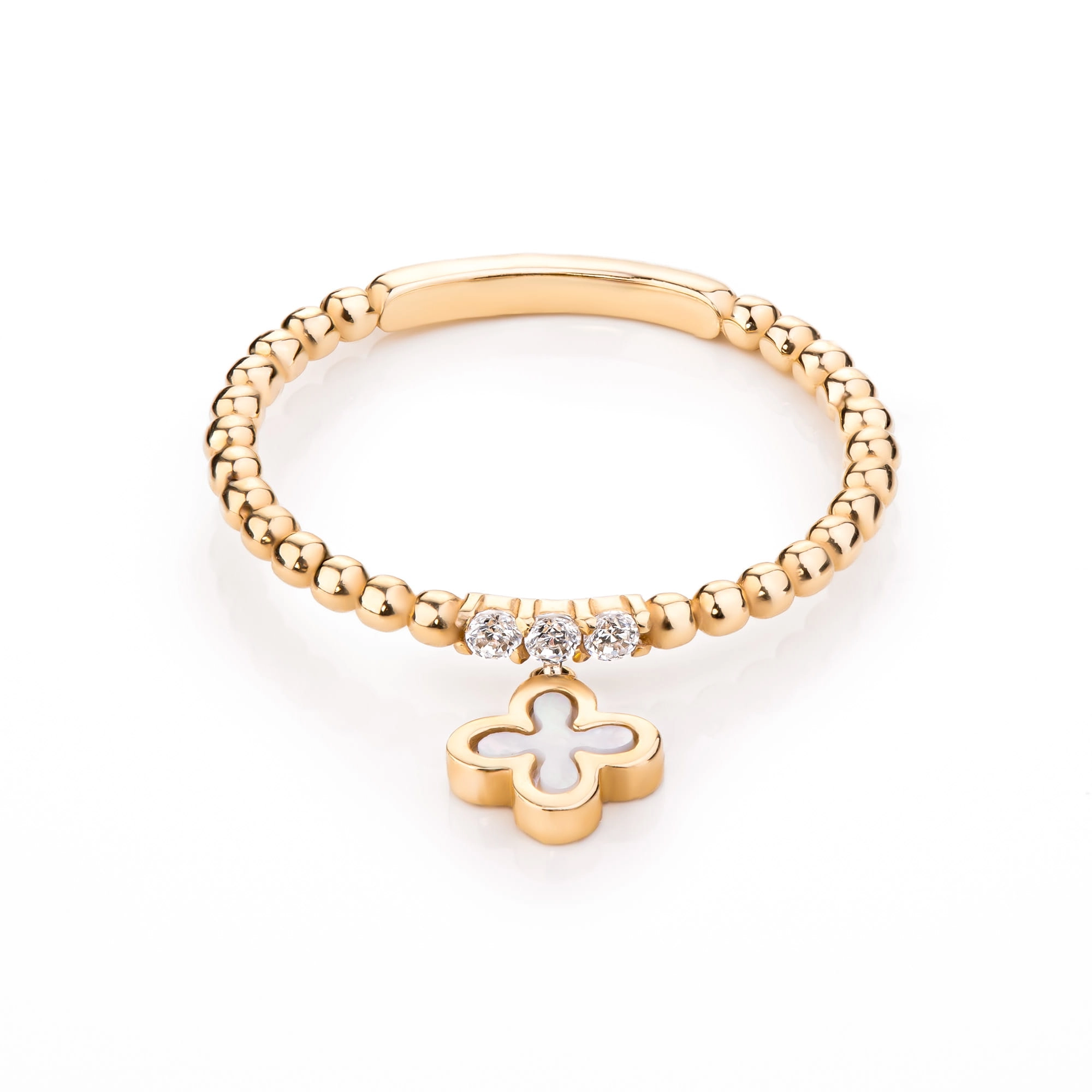 Pierścionek z zawieszką - marokańska koniczyna p.585 (14K) cyrkonie i masa perłowa, rozmiar 18 - NOVADI