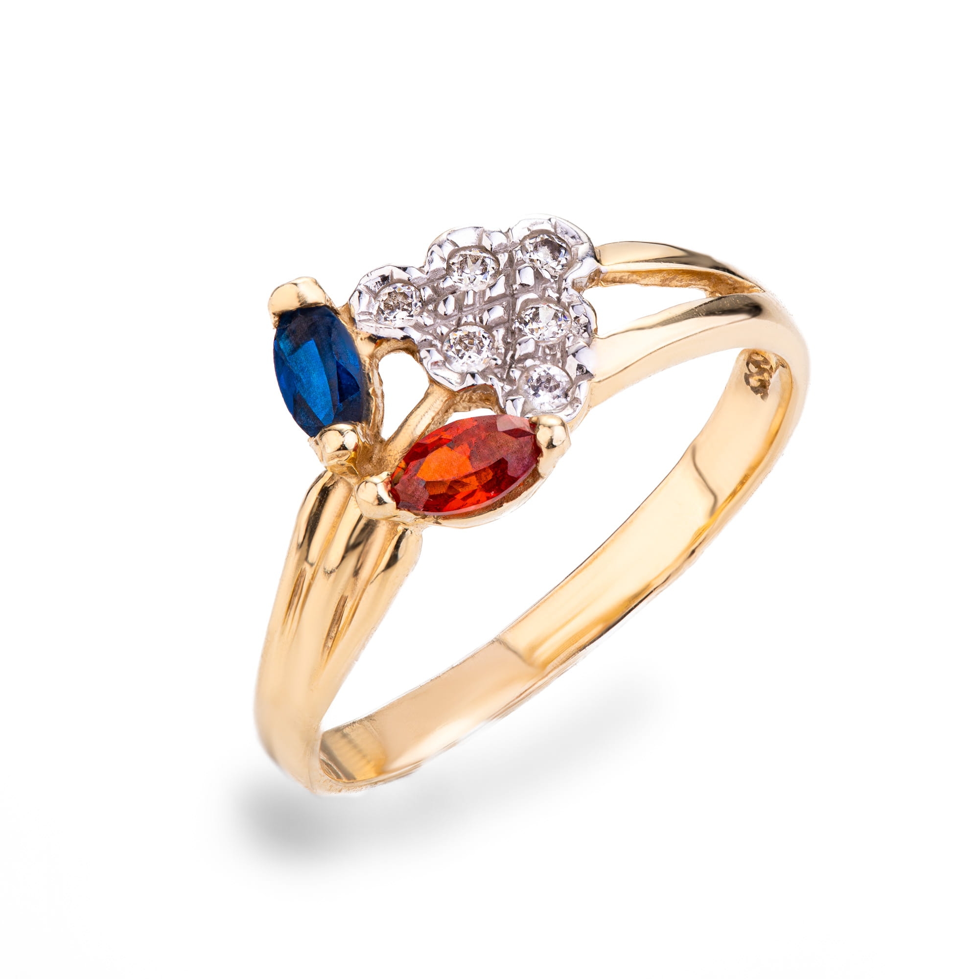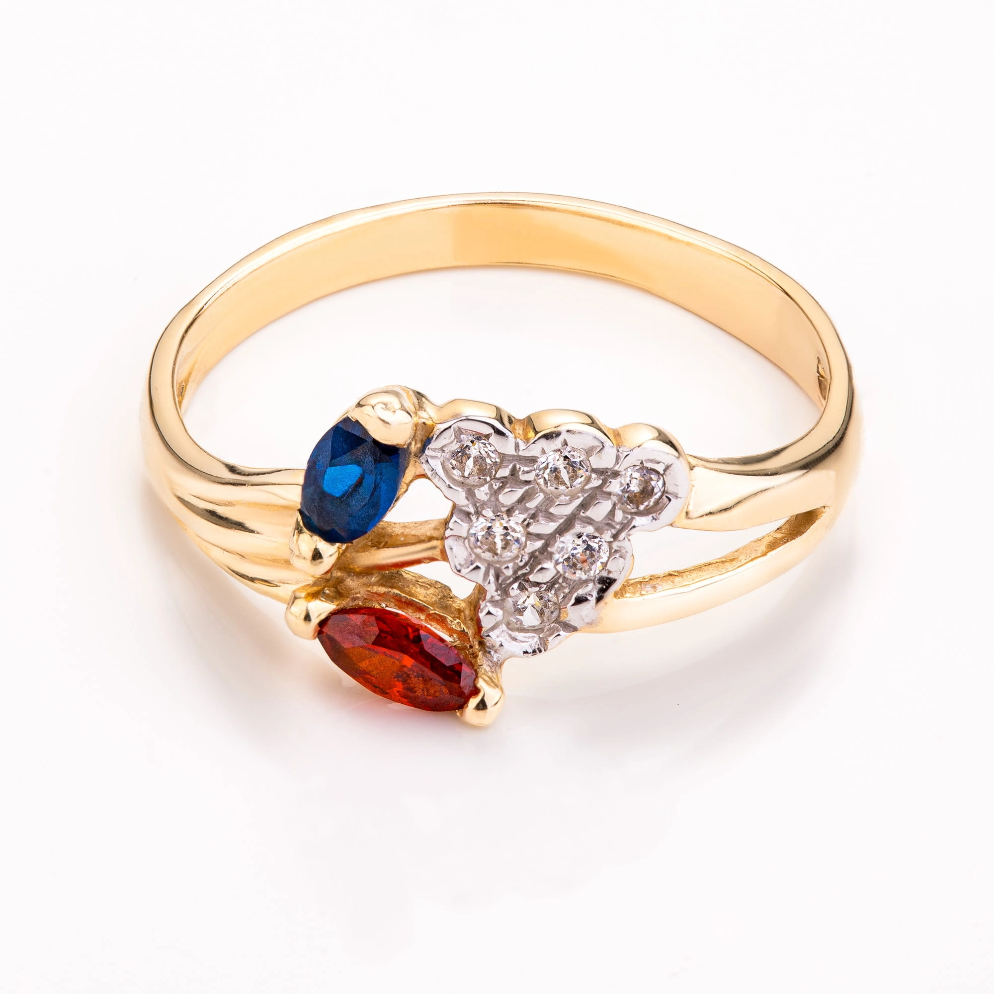 Pierścionek złoty p.585 kolorowe cyrkonie (14K), roz. 16