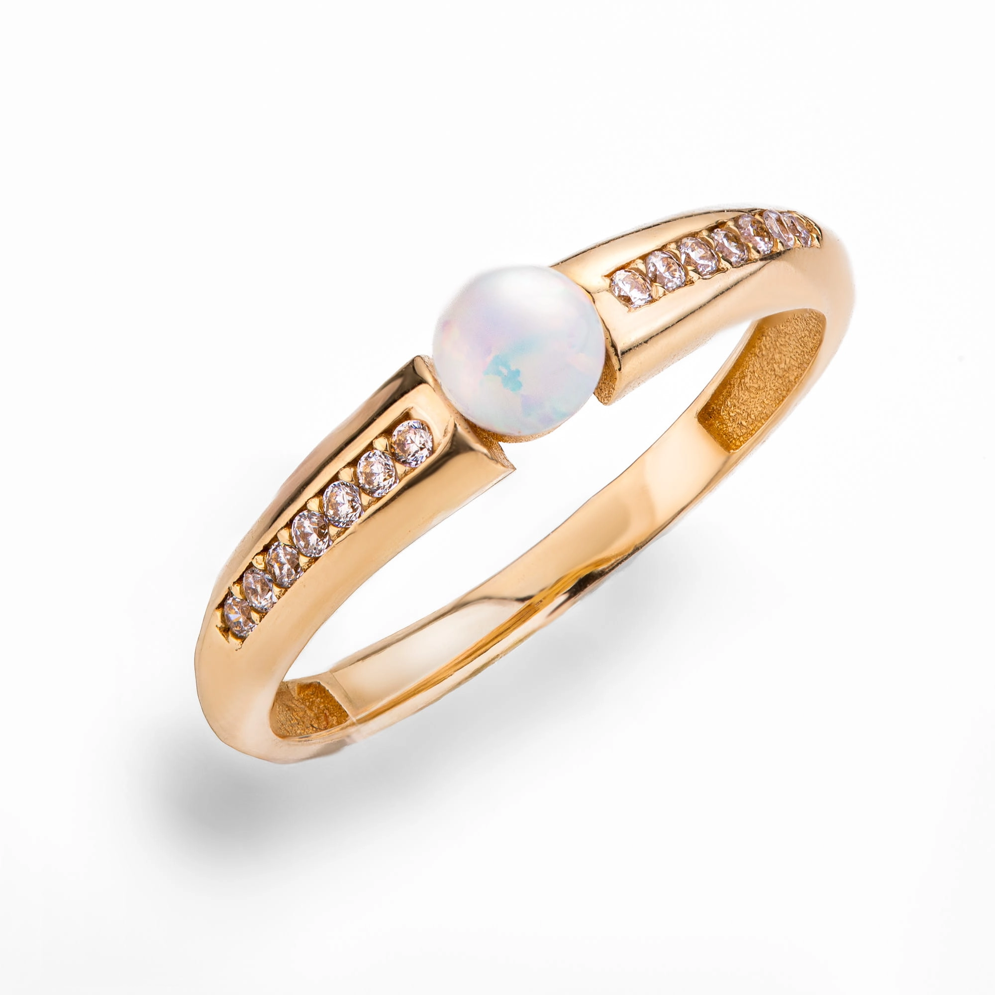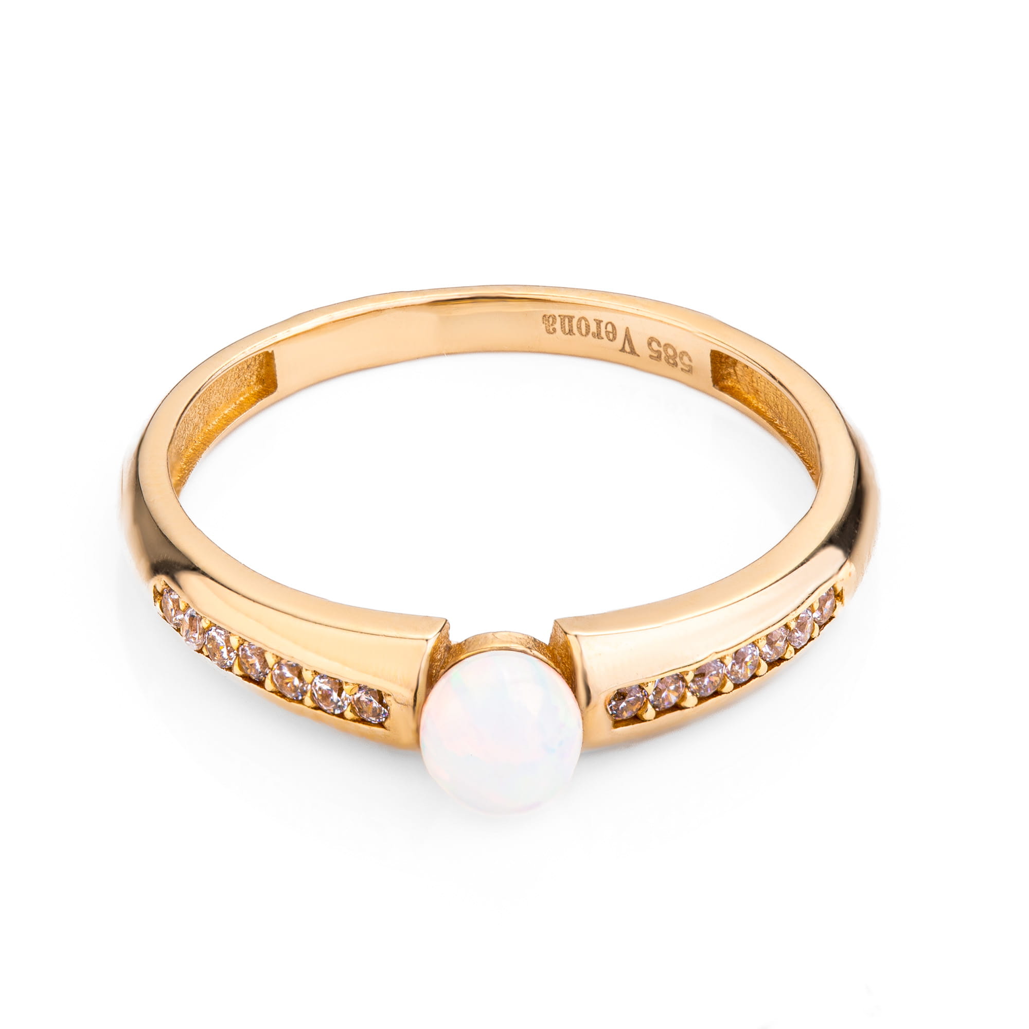 Pierścionek złoty p.585 opal i cyrkonie (14K), rozmiar 11