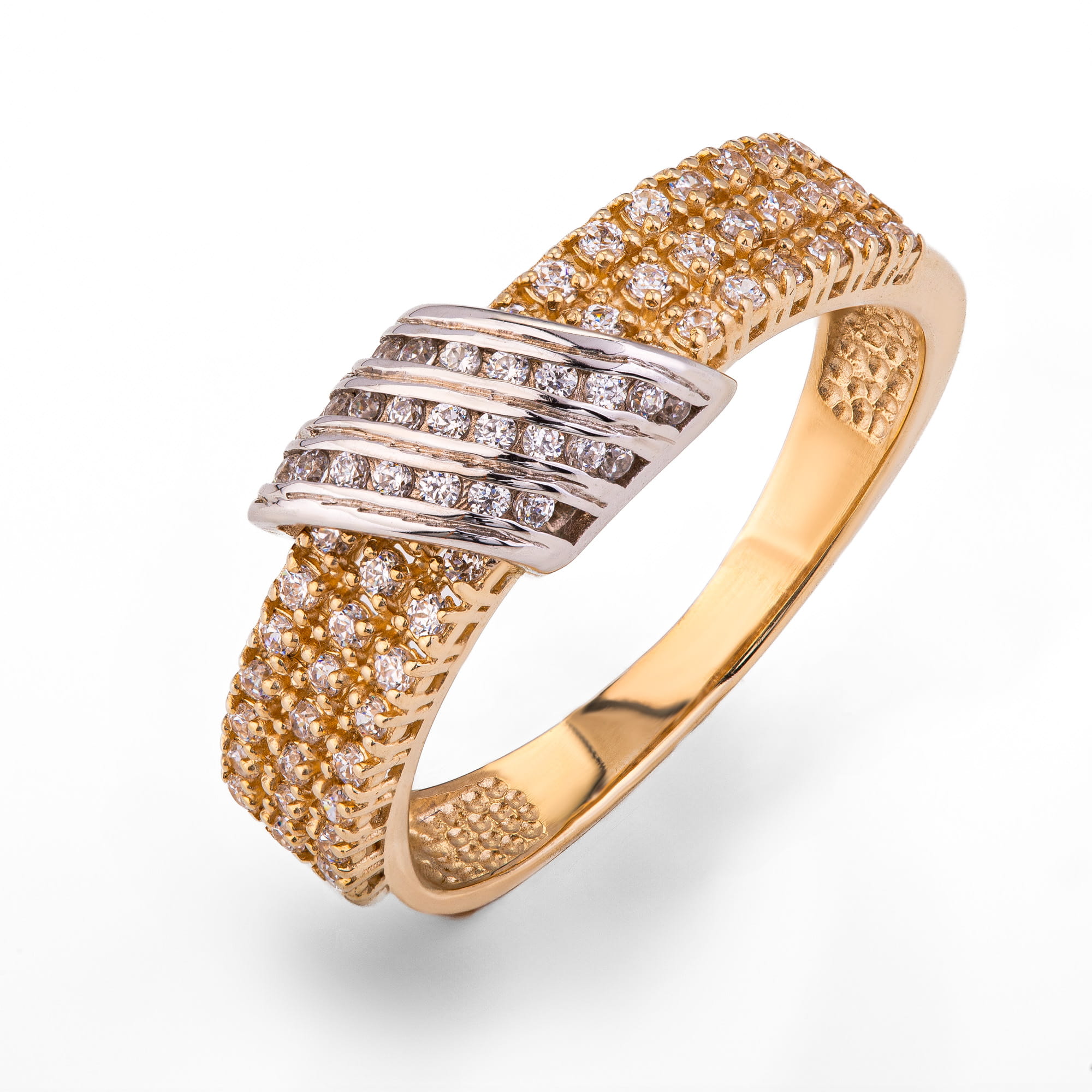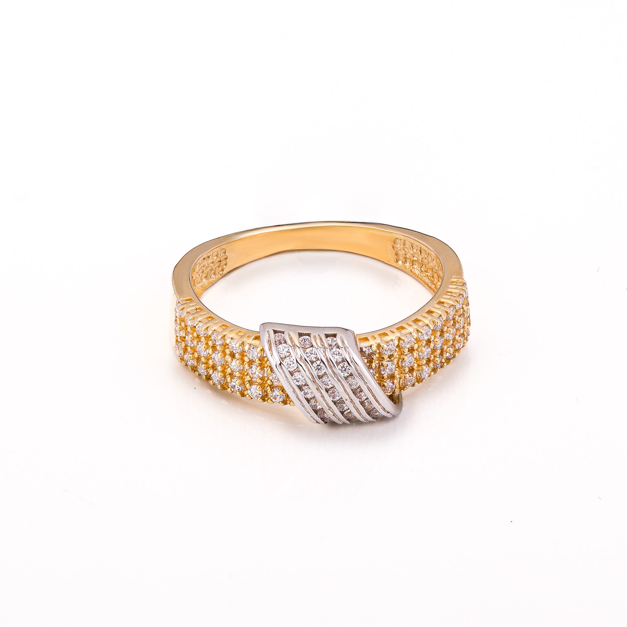 Pierścionek złoty z białym złotem p.585 dużo cyrkonii (14K), roz. 17