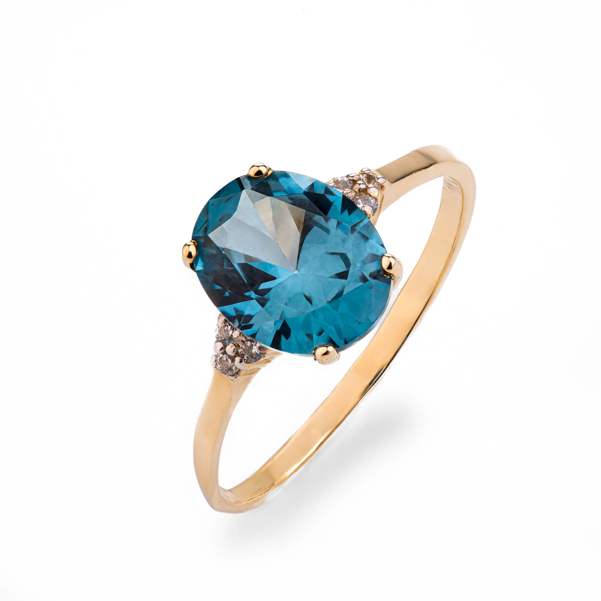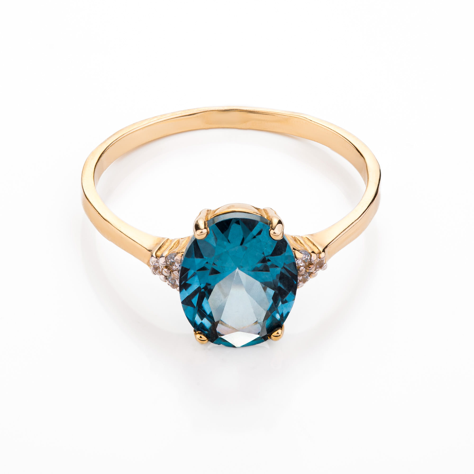Pierścionek złoty z niebieskim Topazem p.585 (14K), roz. 20 - NOVADI