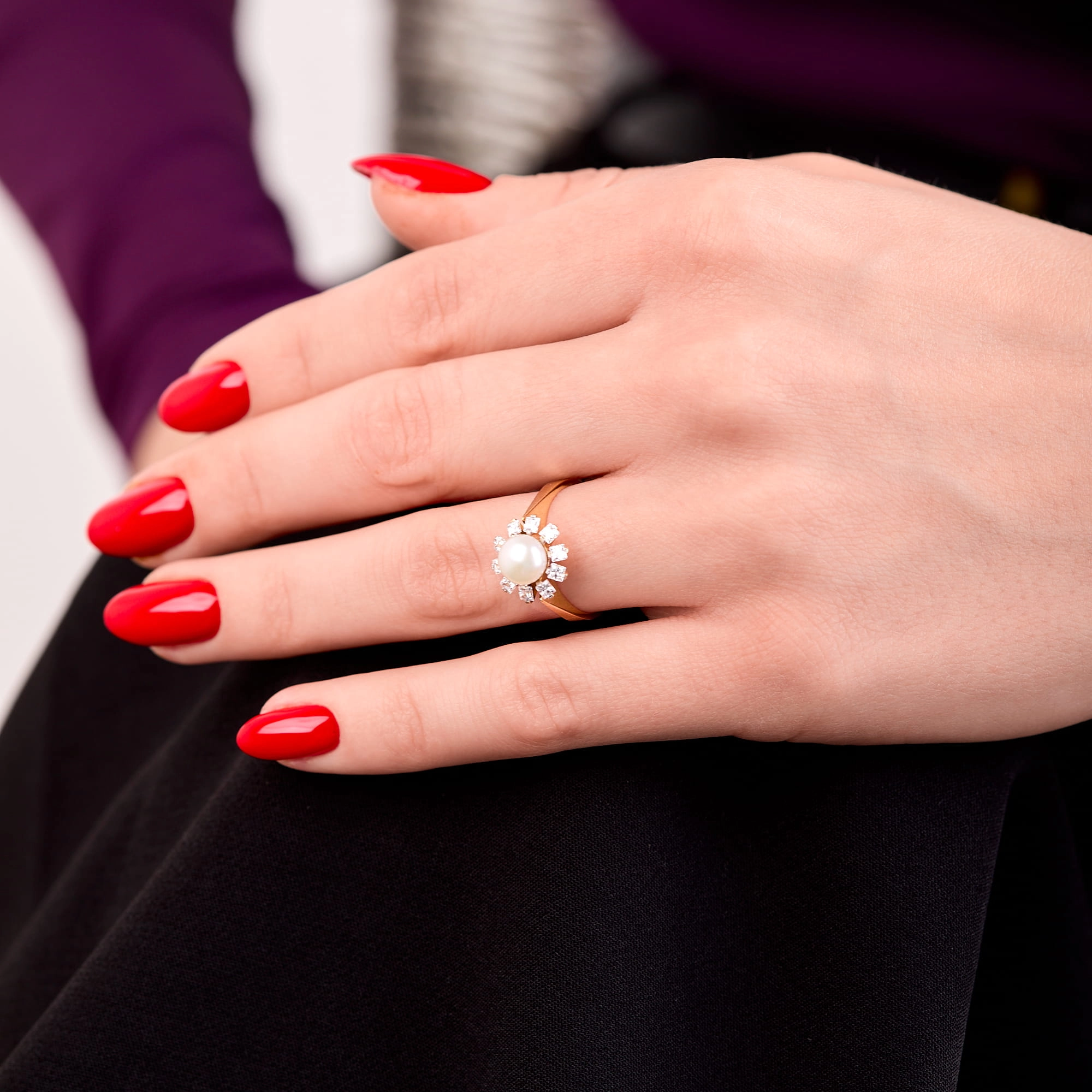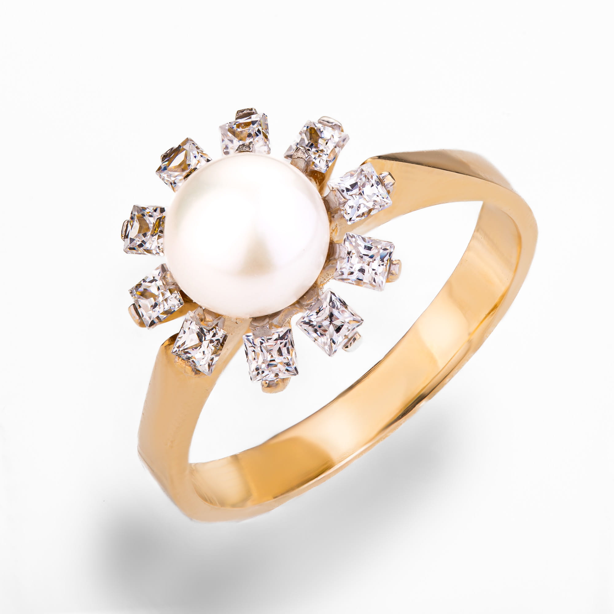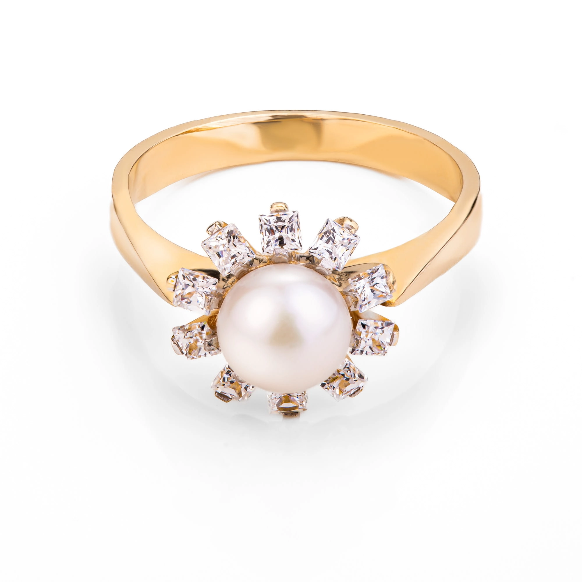 Pierścionek złoty z perłą i cyrkoniami 585 (14K), roz. 14