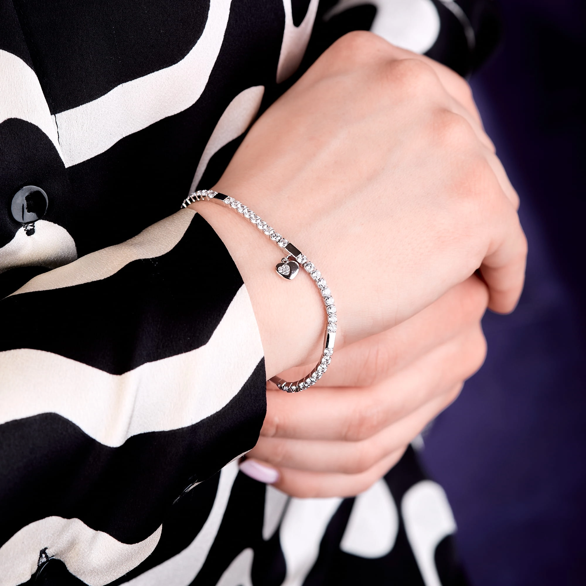 SREBRNA BRANSOLETKA TYPU TENNIS SERCE 20CM DAMSKA SREBRO 925 NA PREZENT