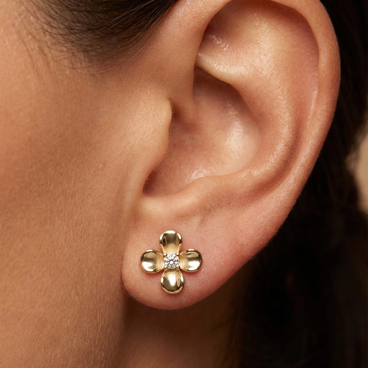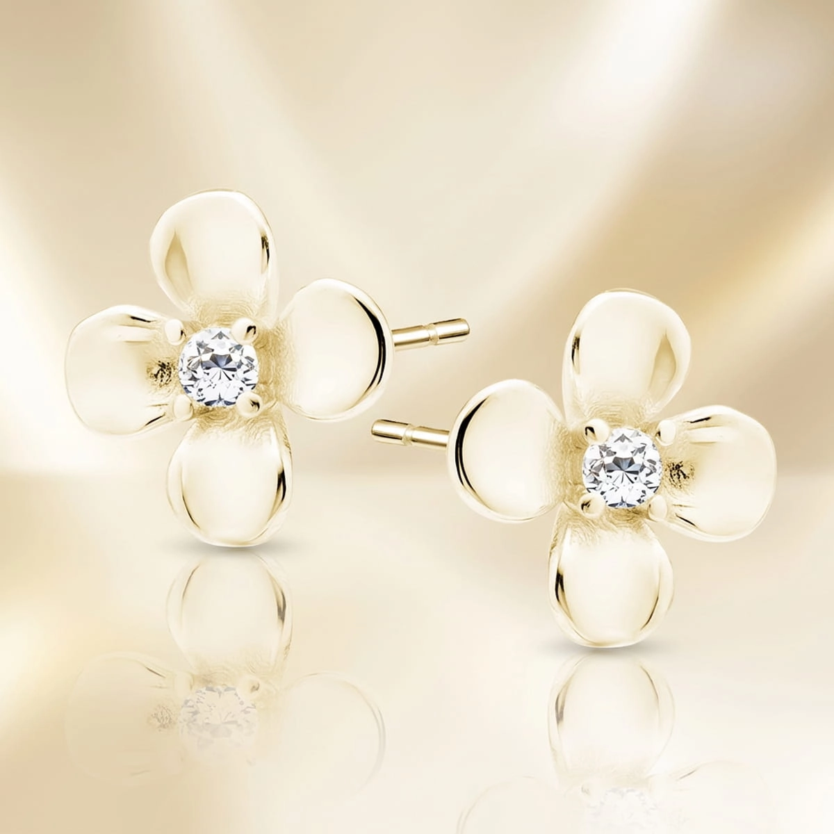 SREBRNE KOLCZYKI 925 - Pozłacane, Kwiatki z cyrkoniami, Na Prezent złote