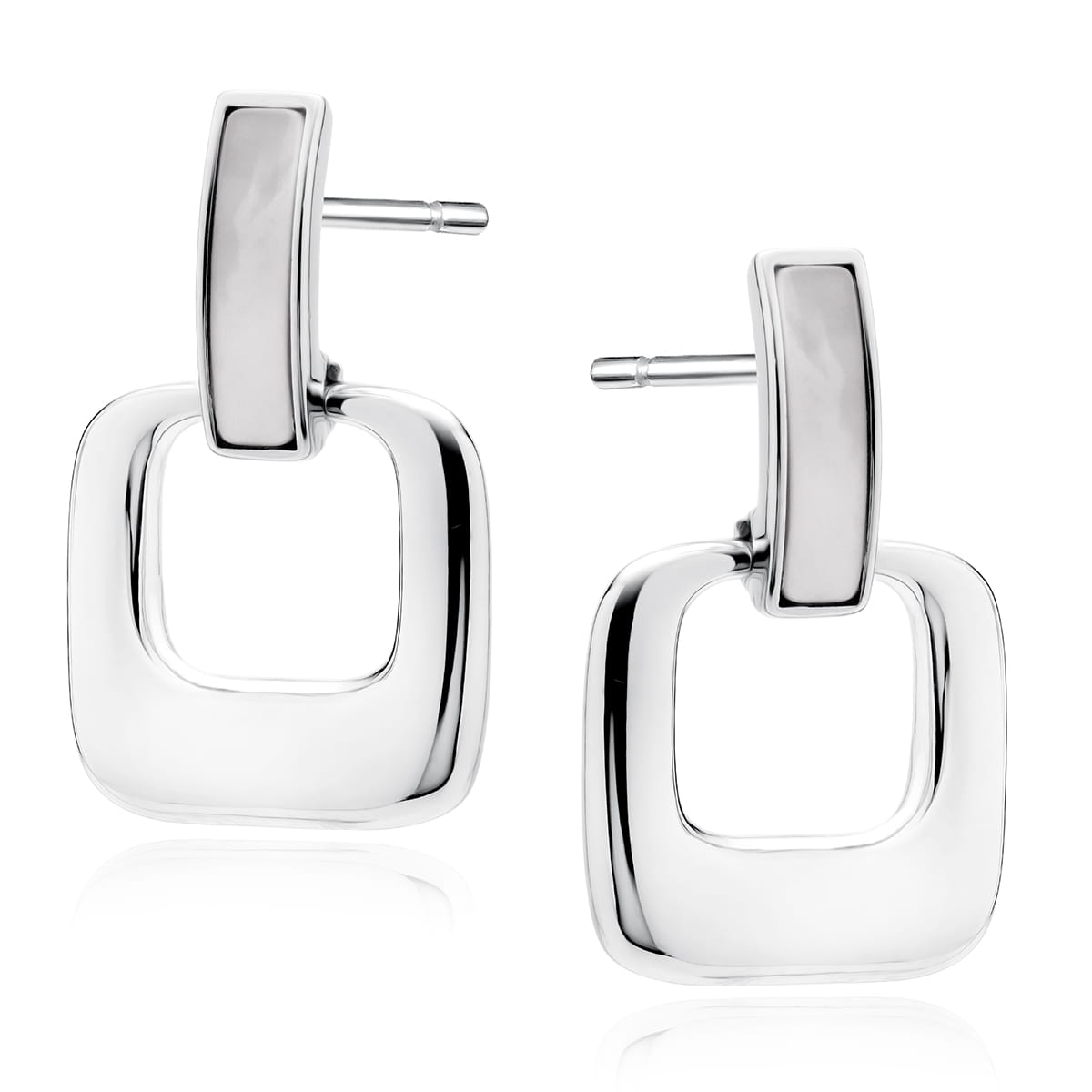 SREBRNE KOLCZYKI 925 Z MASĄ PERŁOWĄ PREZENT NOWOCZESNE GEOMETRYCZNE SZTYFT
