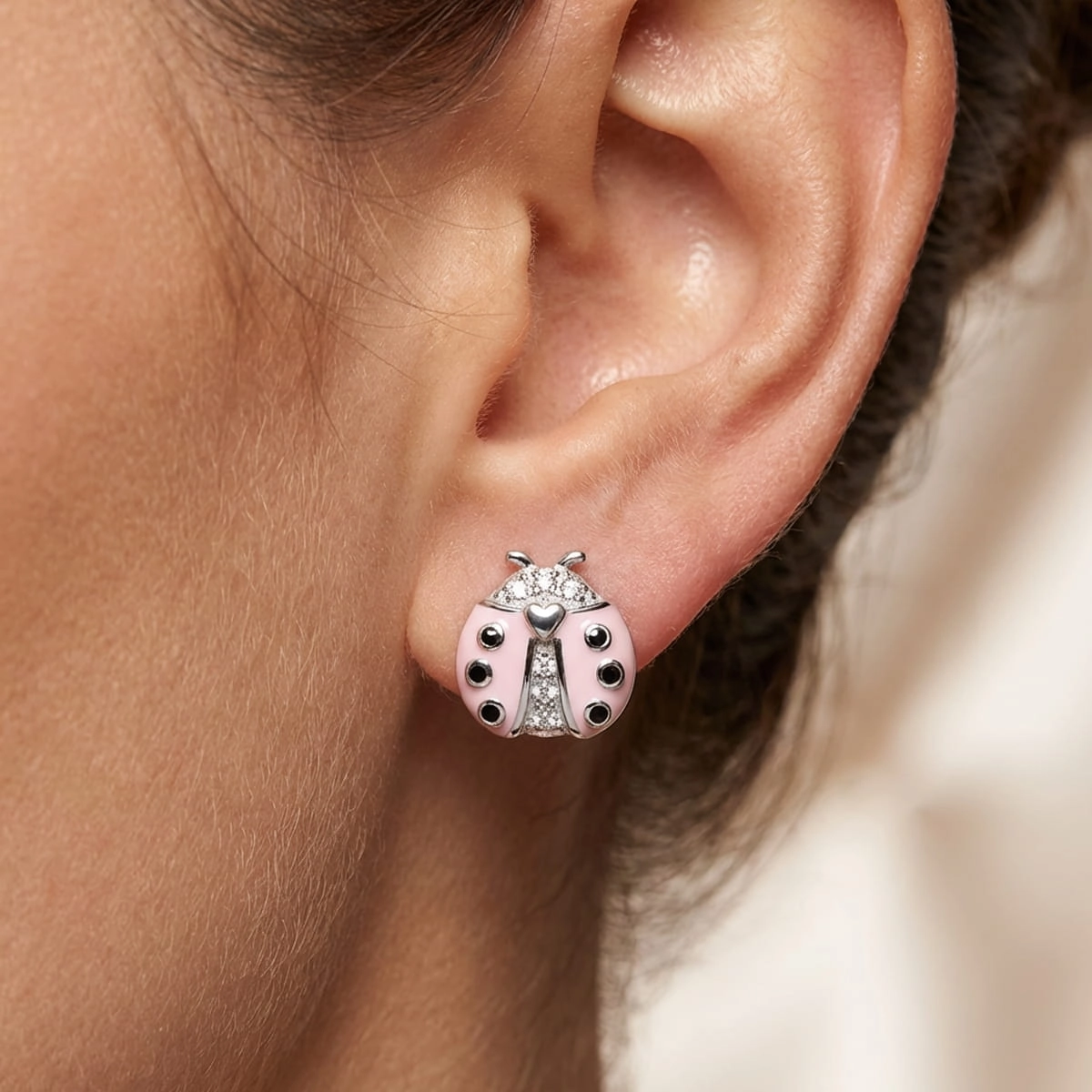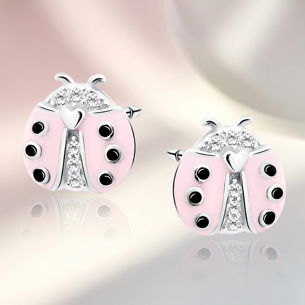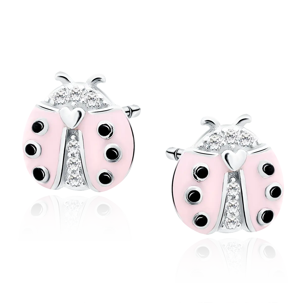 SREBRNE KOLCZYKI SREBRO 925 BIEDRONKI NA PREZENT DZIECIĘCE na sztyft różowe