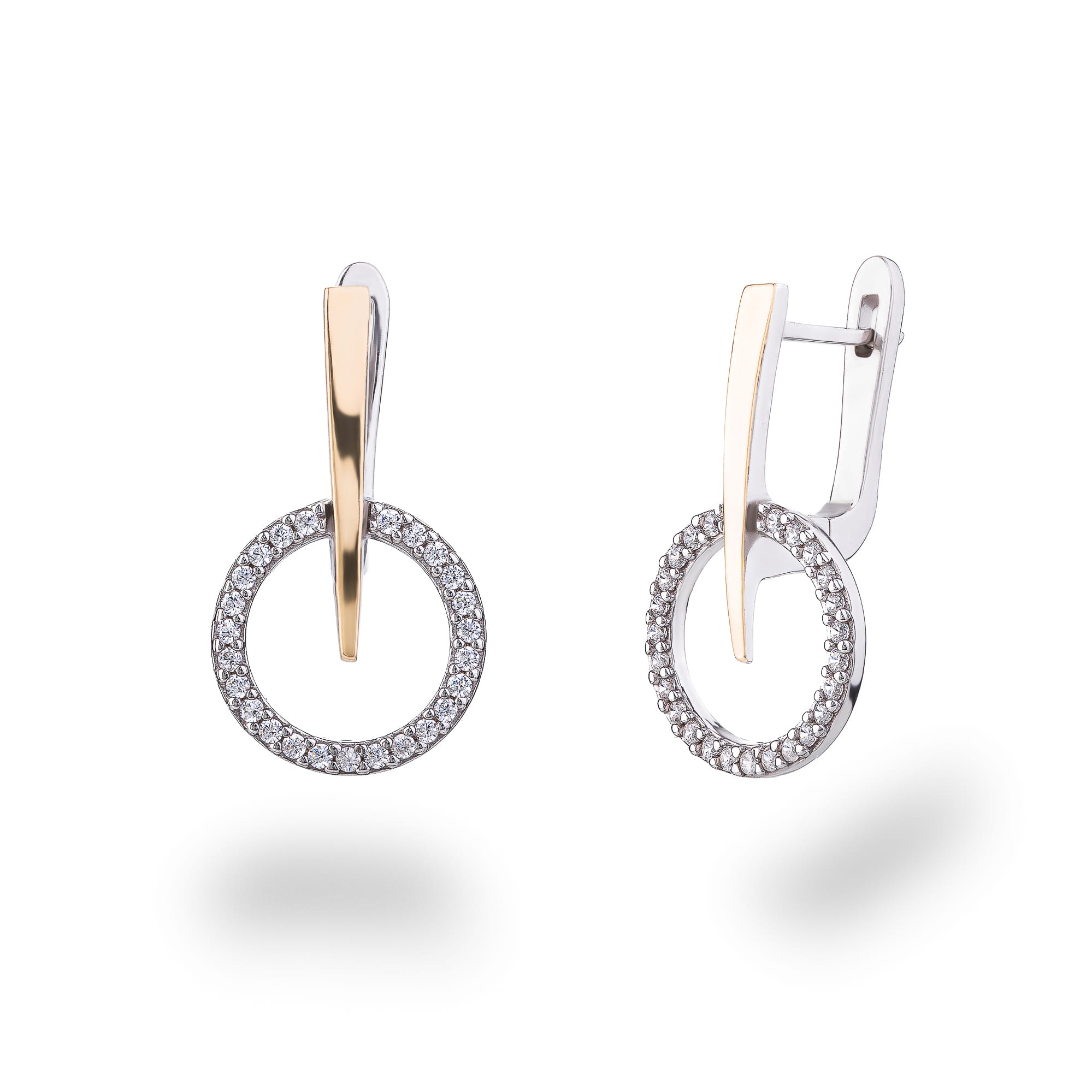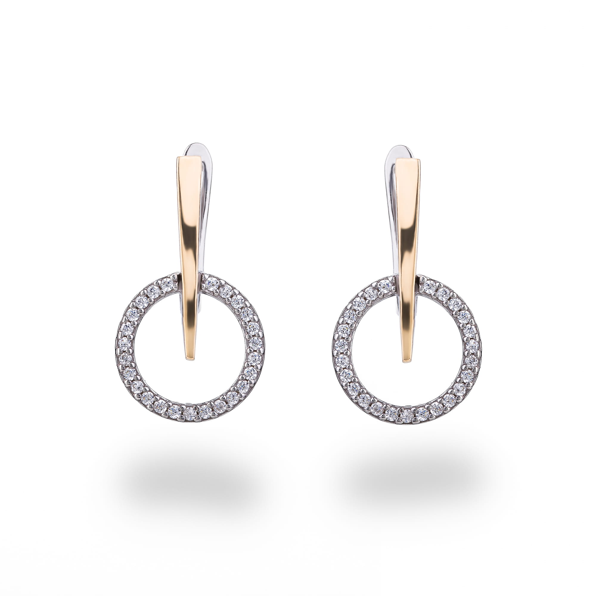 SREBRNE KOLCZYKI SREBRO 925 ELEMENTY ZŁOTA 375 CYRKONIE 9K KOŁA DLA NIEJ