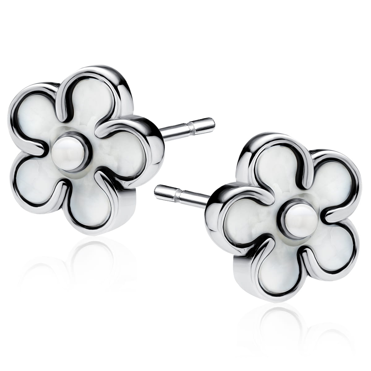 SREBRNE KOLCZYKI SREBRO 925 NA PREZENT DLA NIEJ KWIATKI MASA PERŁOWA SZTYFT