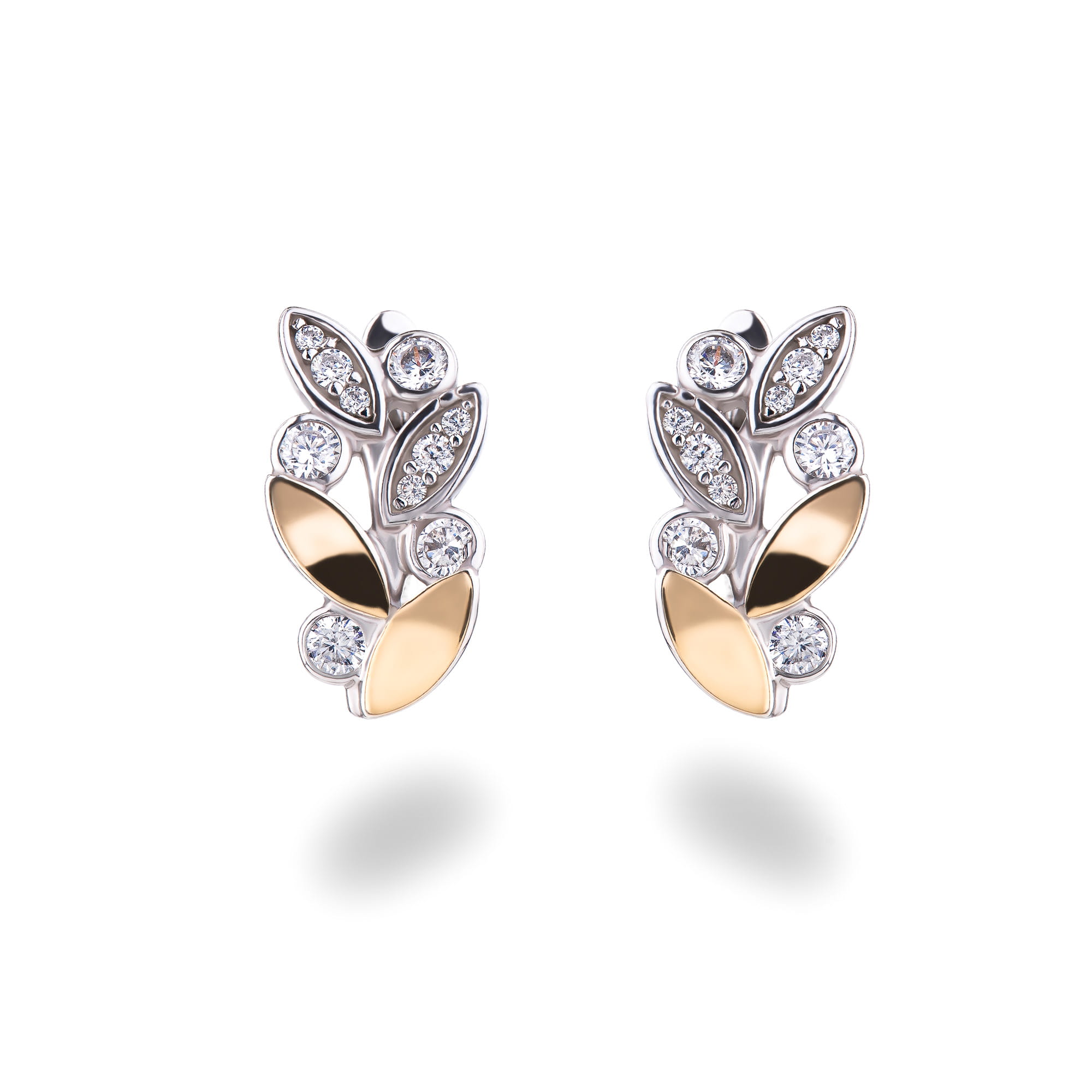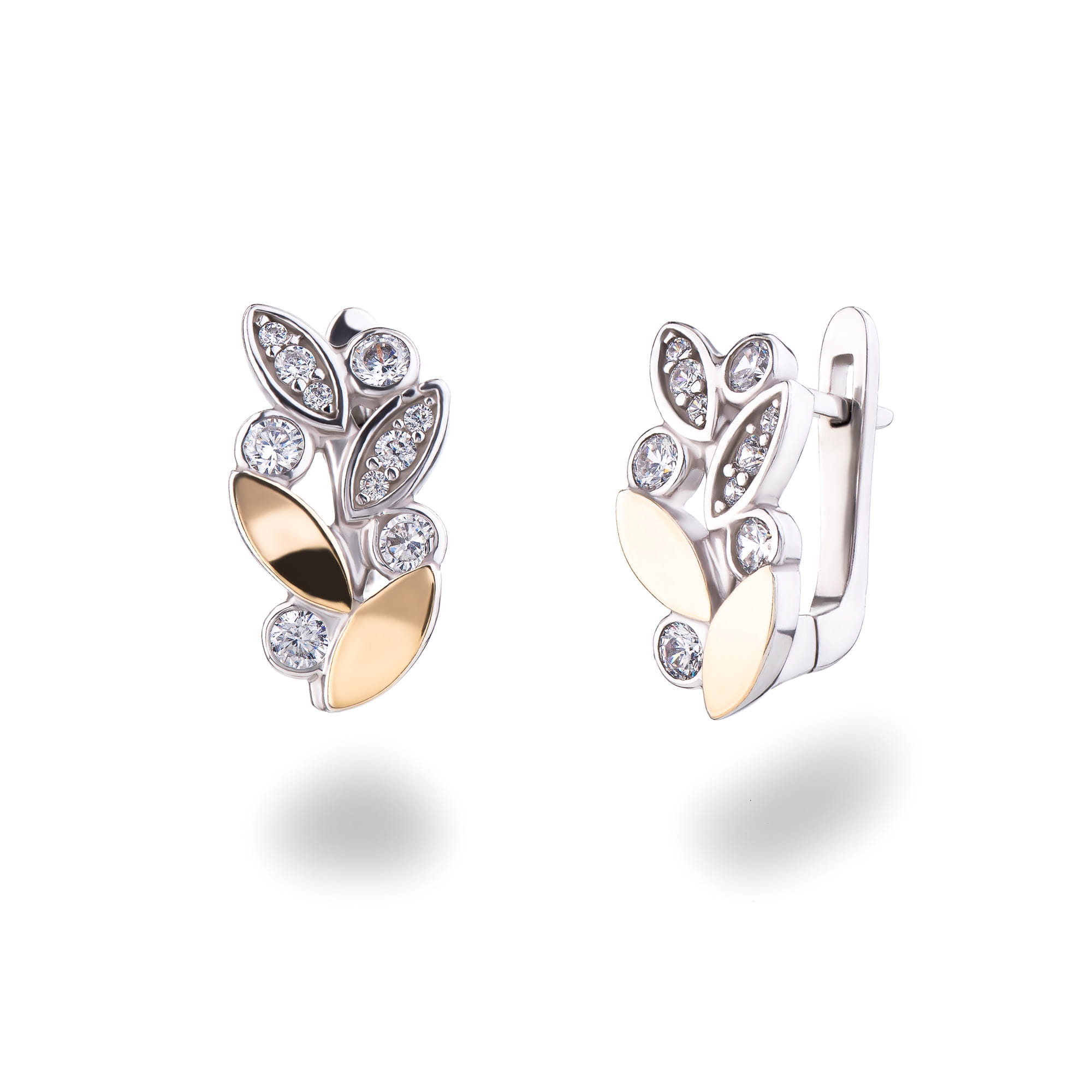 SREBRNE ZŁOTE KOLCZYKI LISTKI SREBRO 925 ZE ZŁOTA 375 CYRKONIE 9K DAMSKIE