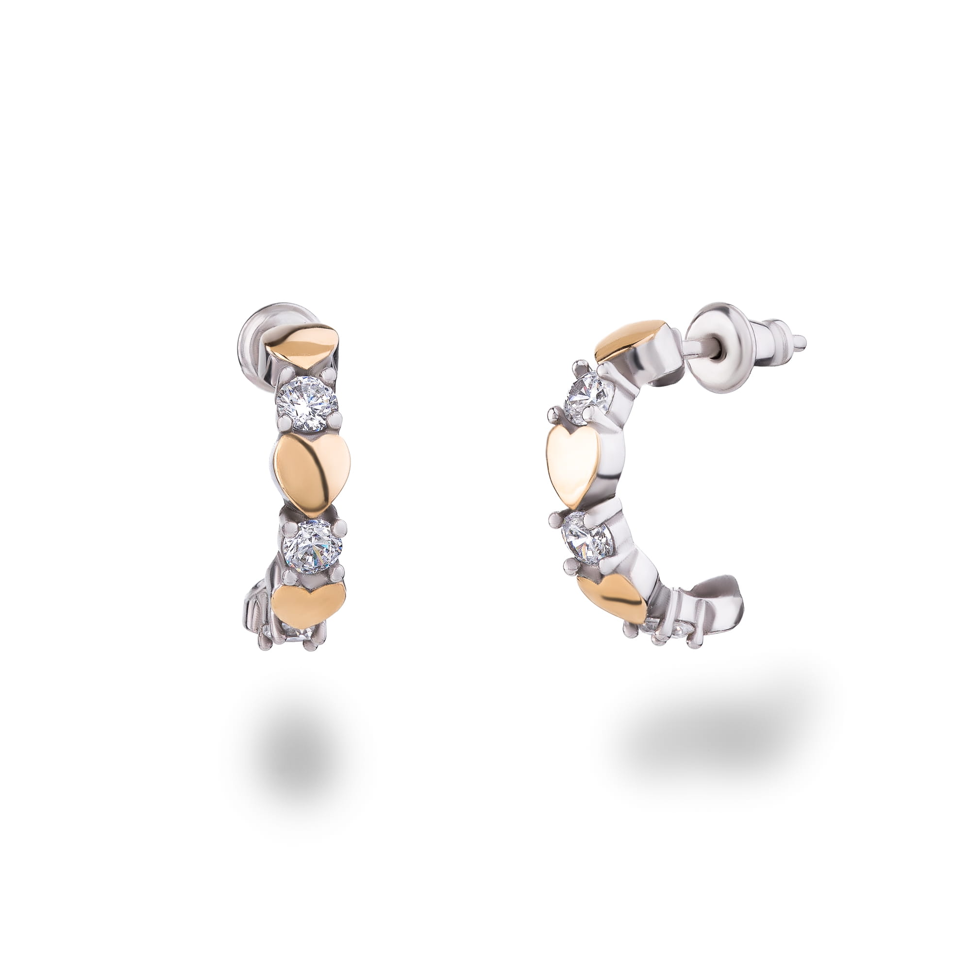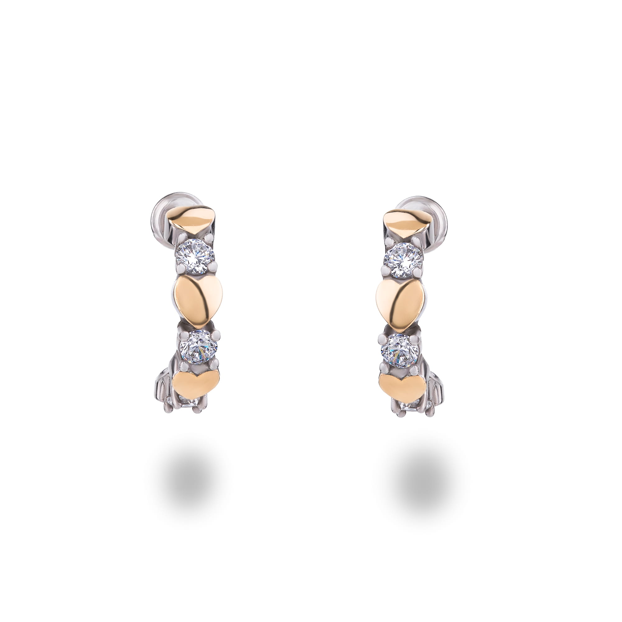 SREBRNE ZŁOTE KOLCZYKI SERCE SREBRO 925 ZŁOTO 375 CYRKONIE 9K DAMSKI SZTYFT