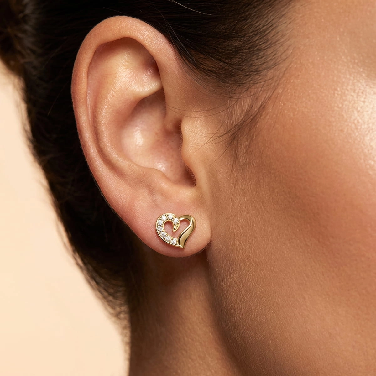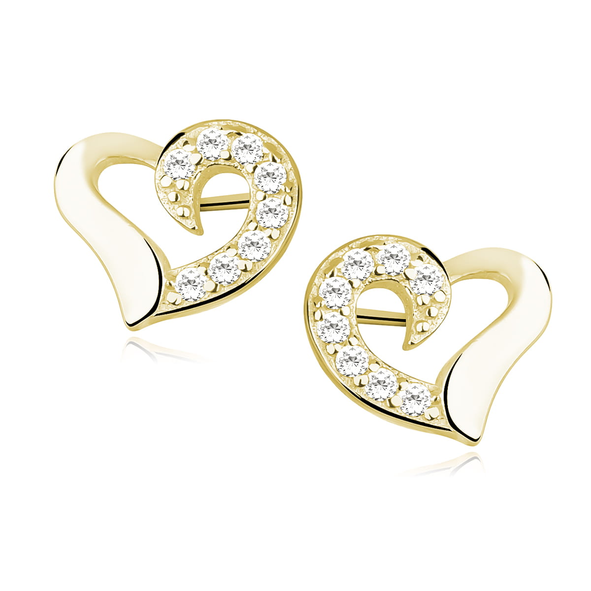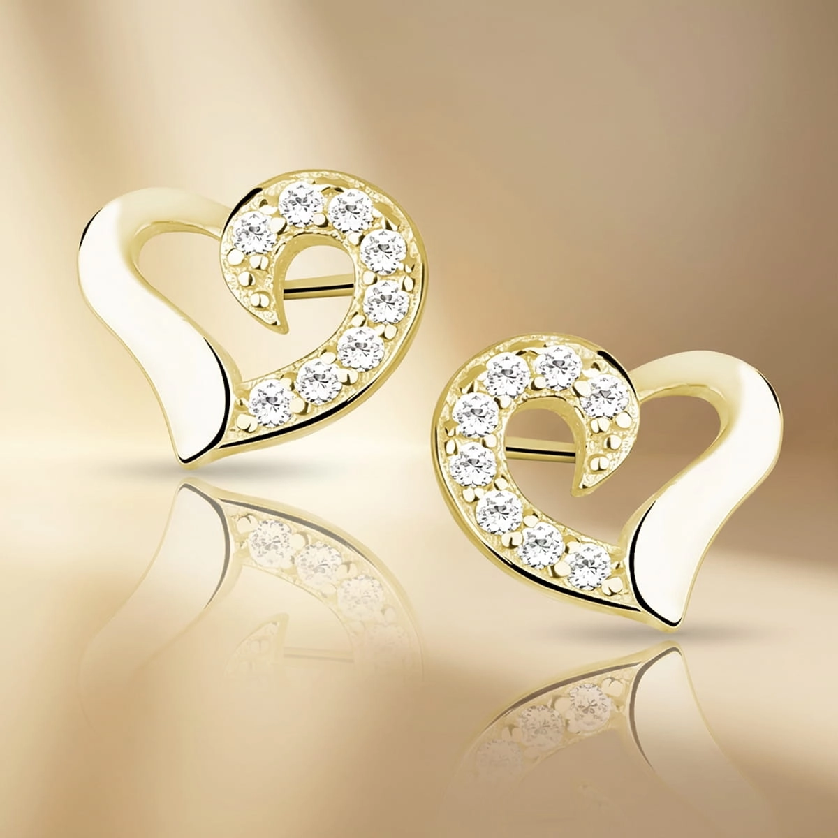 SREBRNE ZŁOTE KOLCZYKI SREBRO 925 Pozłacane Serca, Serduszka z cyrkoniami