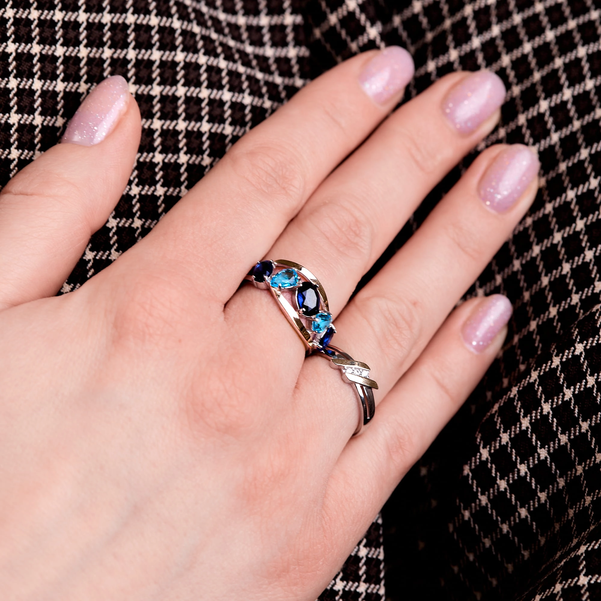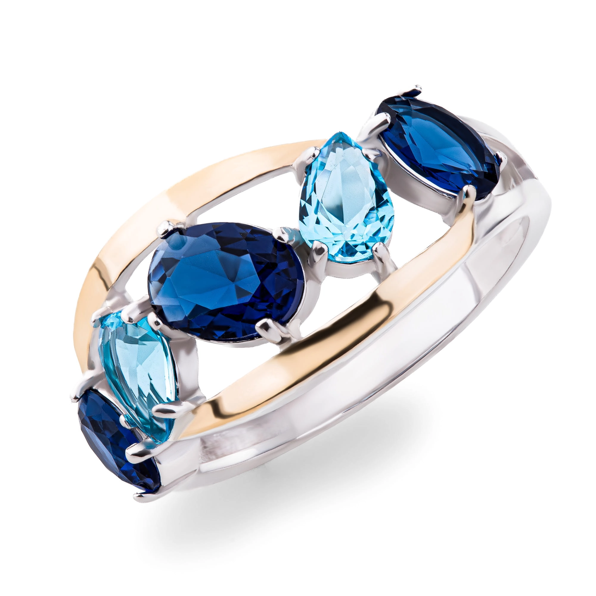 SREBRNY PIERŚCIONEK DAMSKI ROZMIAR 17 SREBRO ZŁOTO 375 NIEBIESKIE CYRKONIE