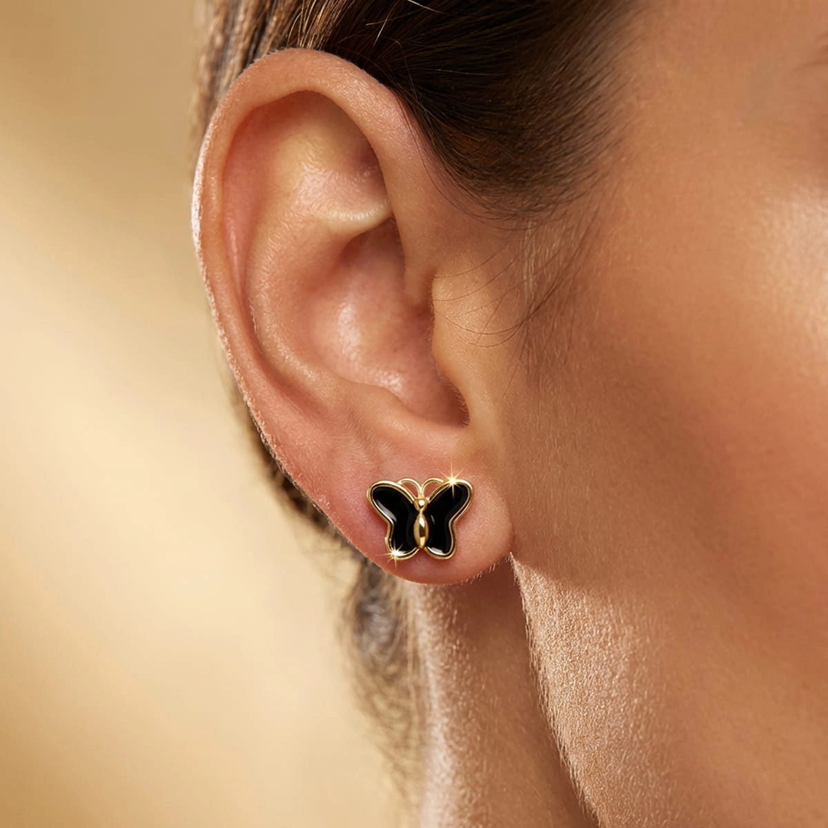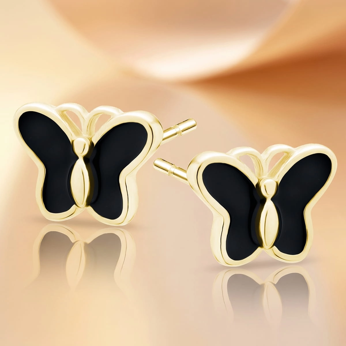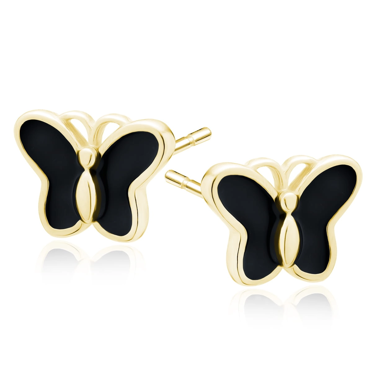 Srebrne Kolczyki Czarne Motylki - Srebro 925, Motyle, Pozłacane, Na Sztyft