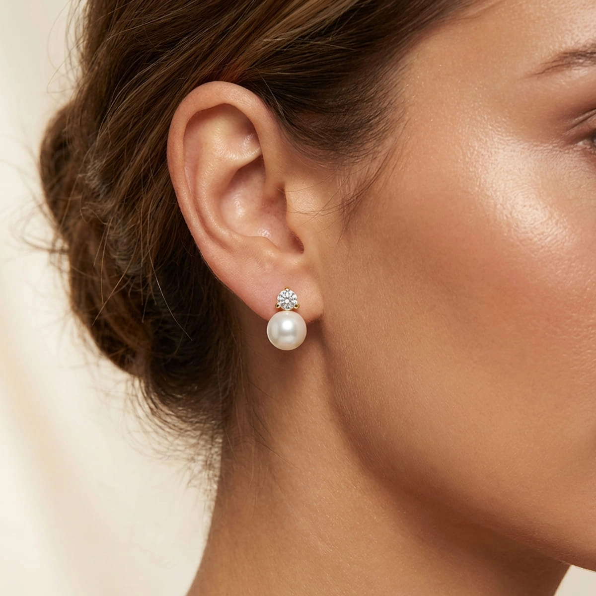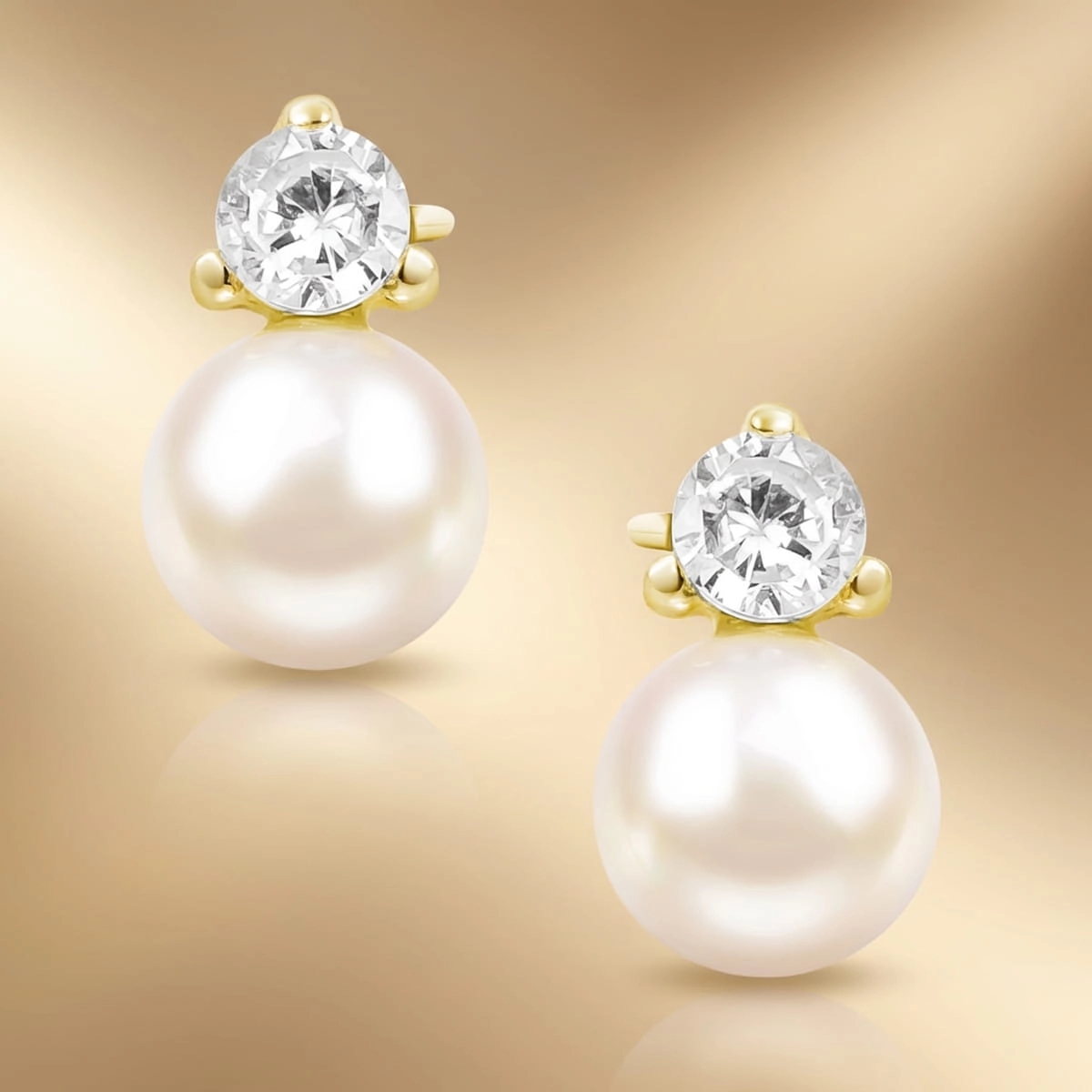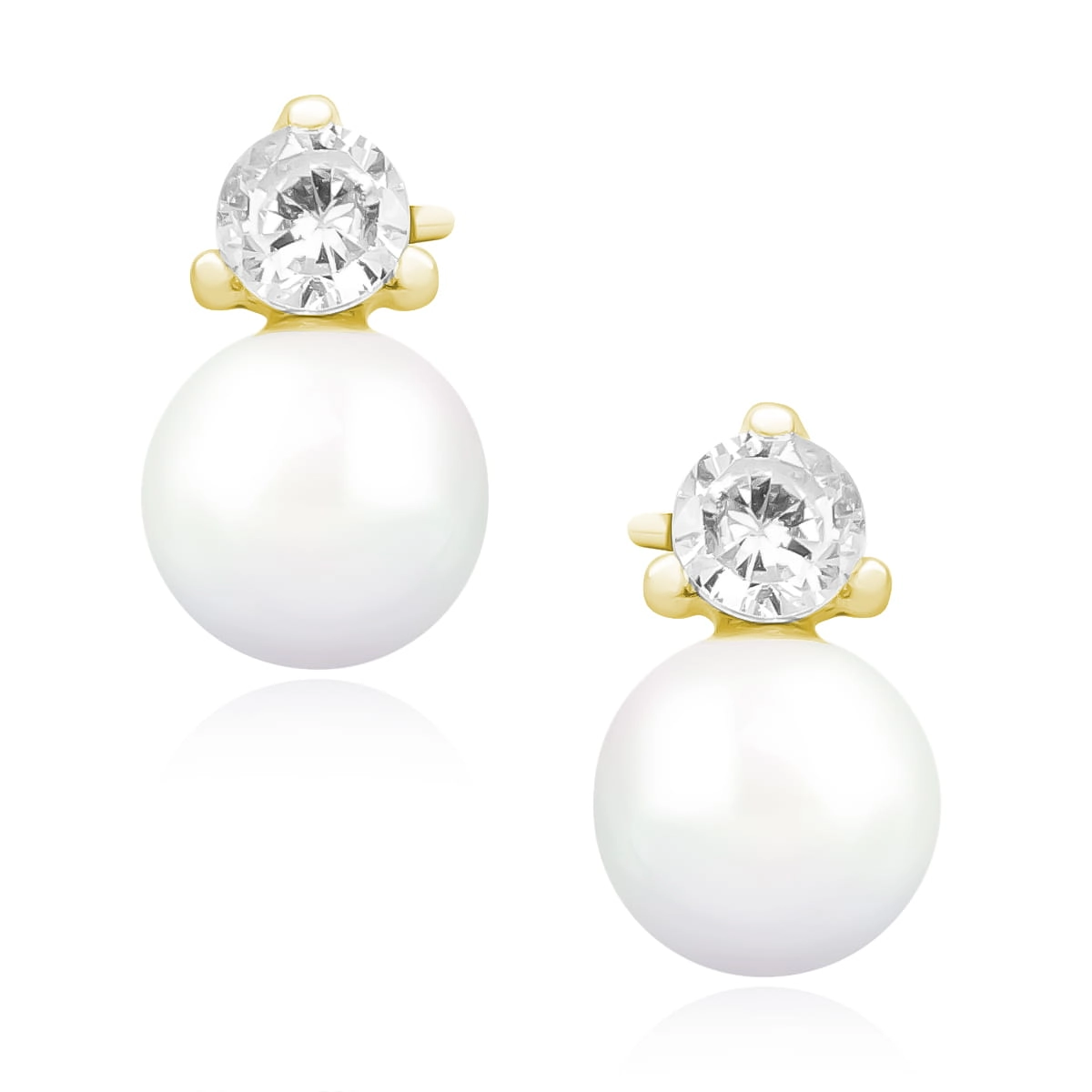 Srebrne Kolczyki Pozłacane Srebro 925, z perłą i cyrkonią, Sztyft dla niej