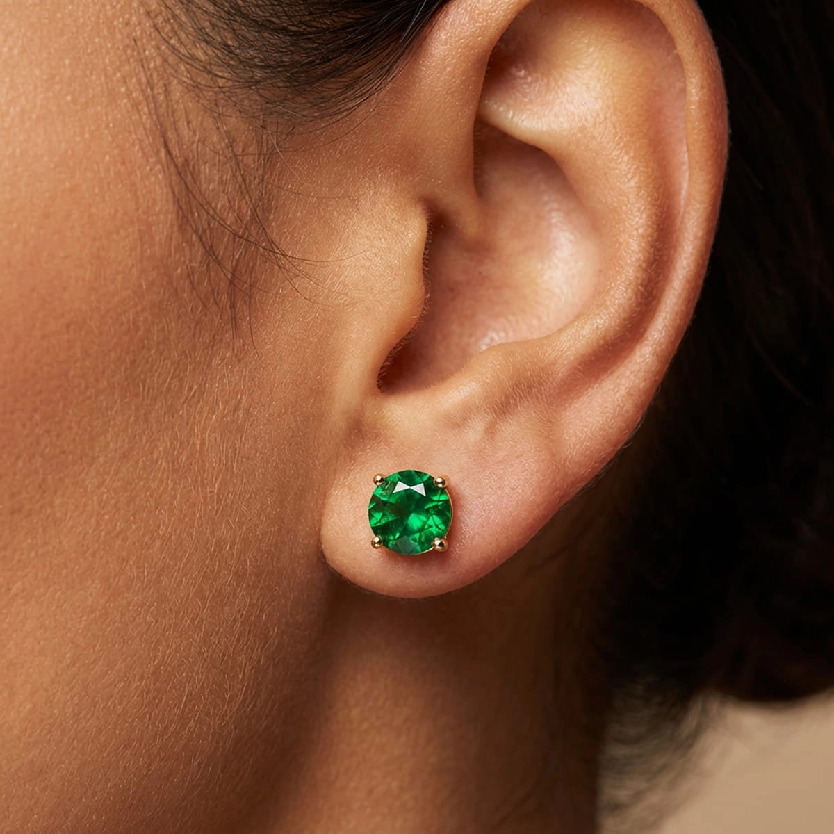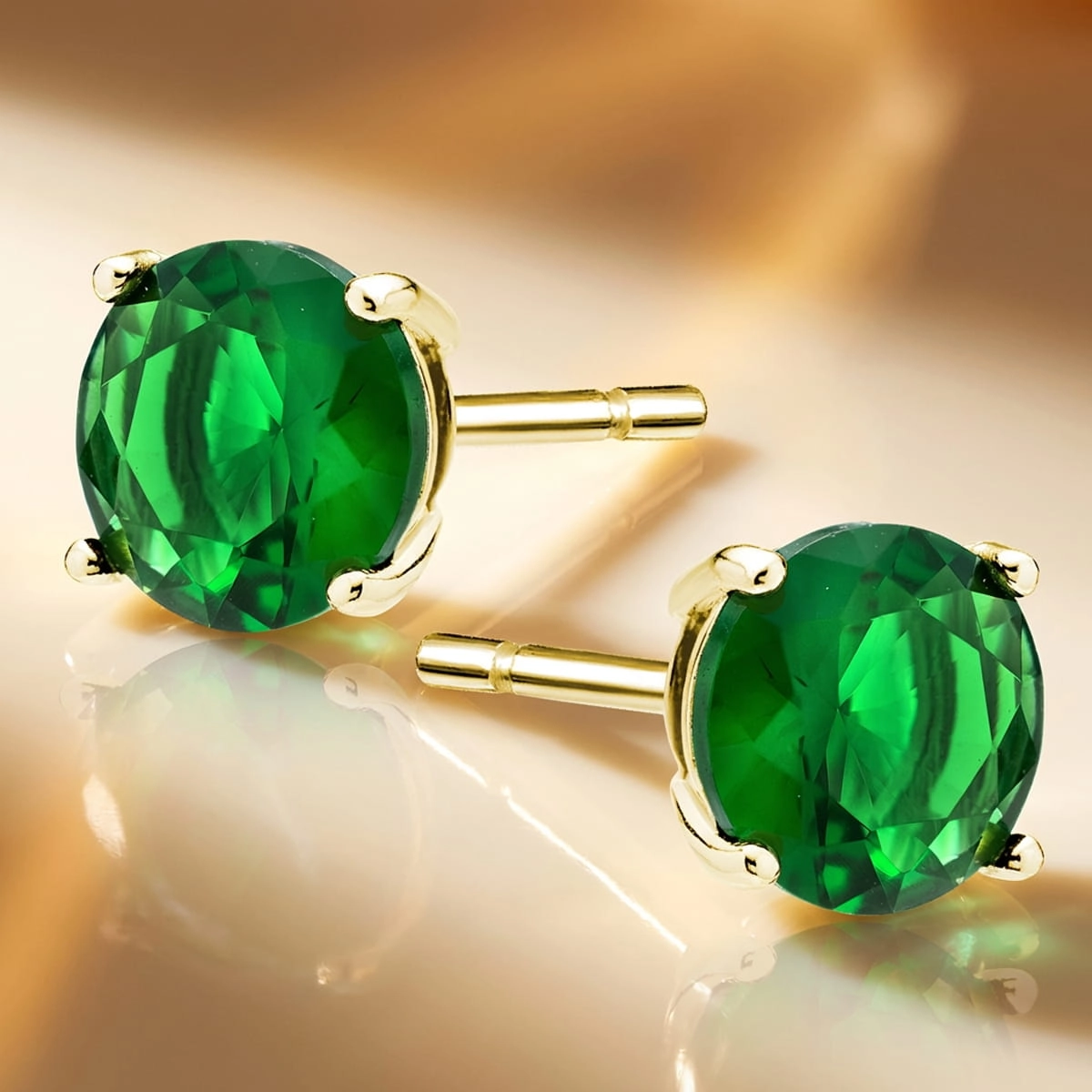 Srebrne Kolczyki- Pozłacane srebro 925 Zielona cyrkonia okrągłe 8mm damskie